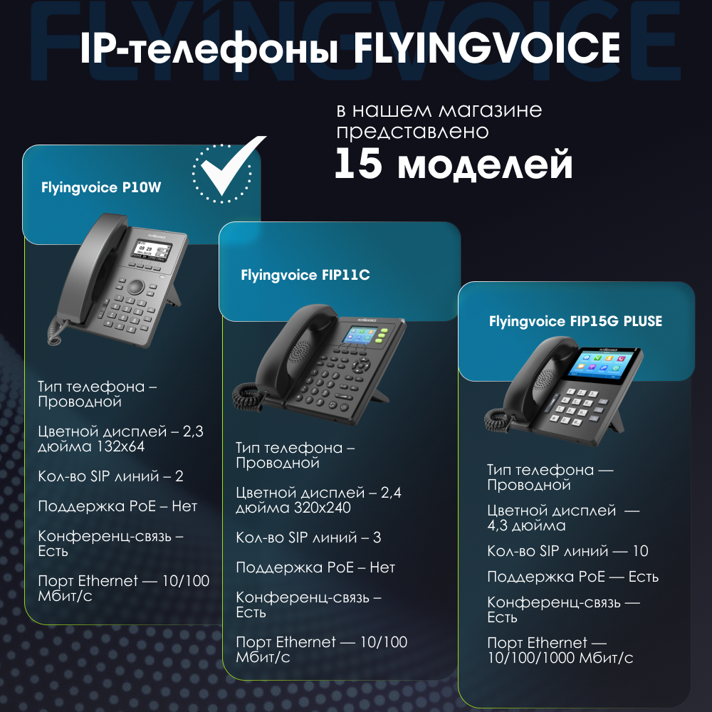 IP-телефон FLYINGVOICE P10W, 2 SIP аккаунта, монохромный дисплей 2,3 дюйма, 132 x 64 с подсветкой, конференция на 6 абонента, гарнитура (RJ9) и Wi-Fi интересное: