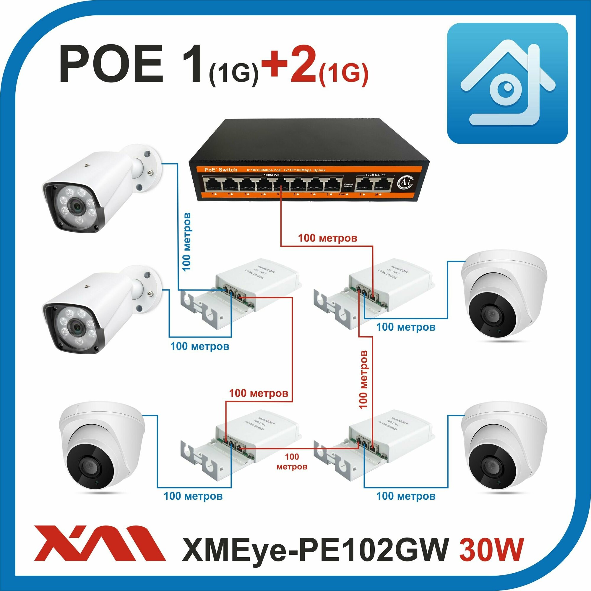 XMEye-PE102GW. 30W. Extender (Экстендер) POE на 1+2 порта GIGABIT (10/100/1000M) для уличной установки. интересное: