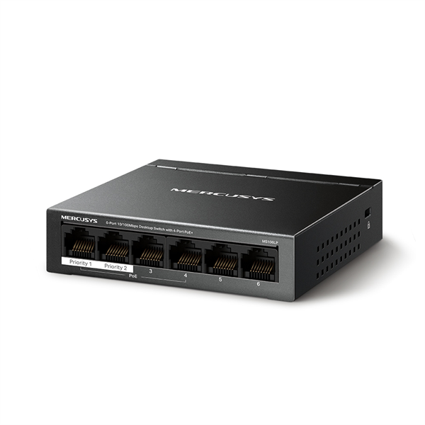 Купить Mercusys MS106LP Настольный коммутатор с 6 портами 10/100 Мбит/с (4 порта PoE+)