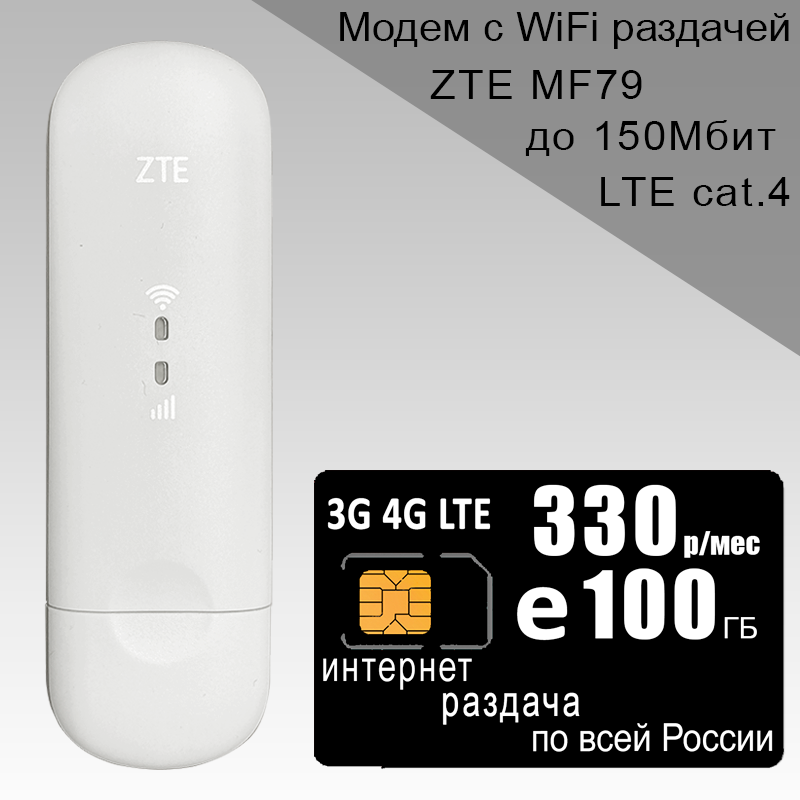 Комплект модем ZTE MF79U (RU) + сим карта для интернета и раздачи, 100ГБ за 330р/мес.