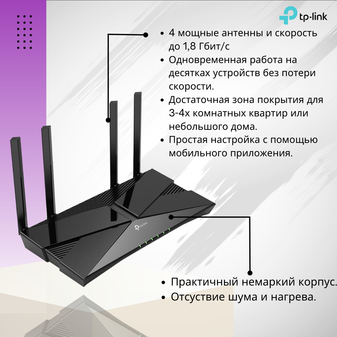 Wi-Fi роутер TP-Link EX220 802.11ax Wi-Fi 6 черный