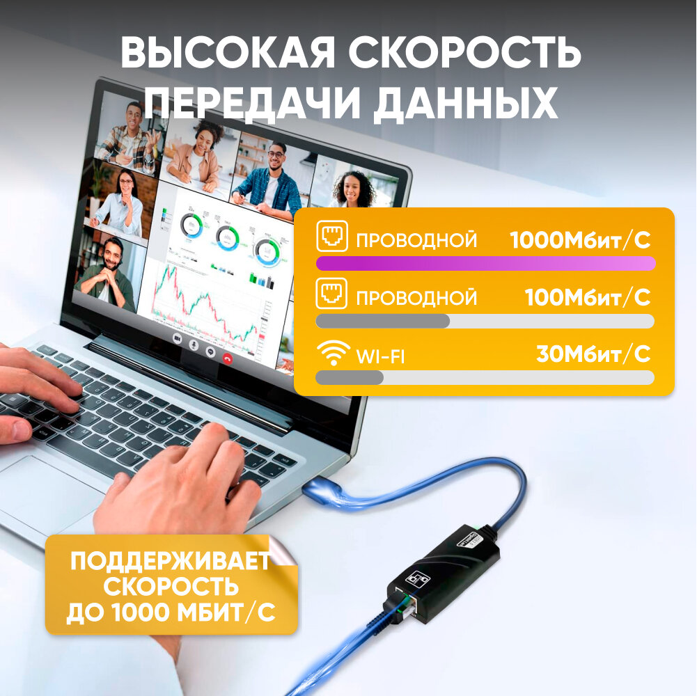 Сетевой адаптер для LAN-соединения USB 3.0 на RG45 Ethernet 10/100/1000 Mbps / внешняя сетевая карта для ноутбука / Ethernet интересное: