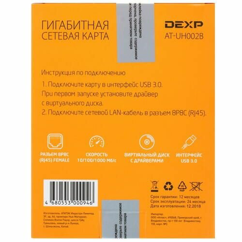 Сетевая карта DEXP AT-UH002B интересное: