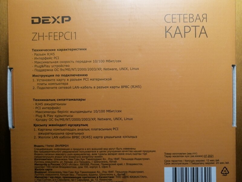 Сетевая карта DEXP ZH-FEPCI1 интересное: