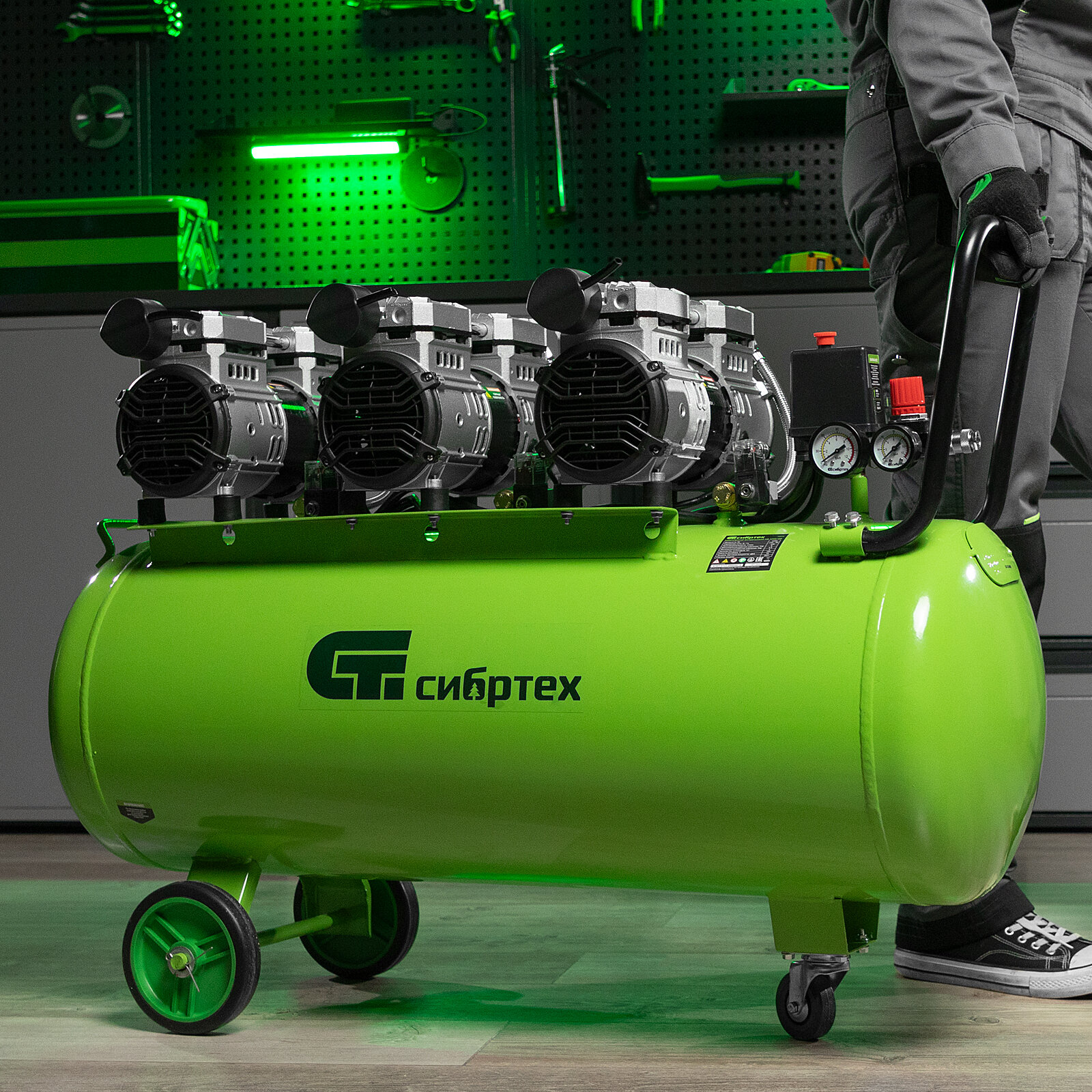 Сибртех : 58008 Компрессор безмаслянный малошумный МБ 2250/100, 2250 Вт, 100л, 400 л/мин