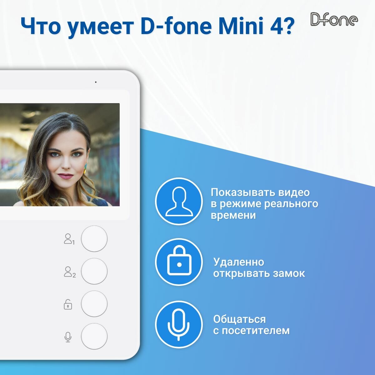 Видеодомофон для квартиры или частного дома D-fone Mini 4 (MN400 W, Белый), дисплей 4", cовместим с подъездным домофоном через модуль сопряжения интересное: