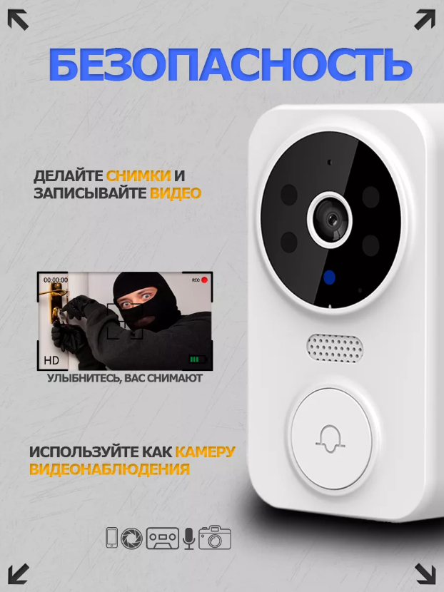 Беспроводной дверной видеозвонок Wi-Fi, белый интересное: