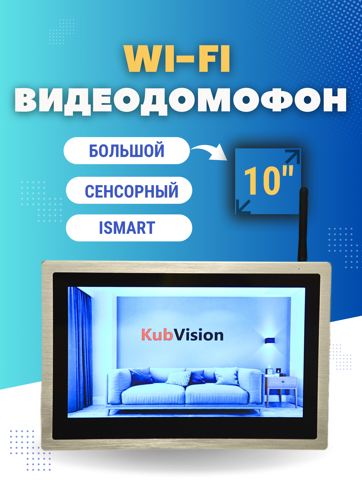 Домофон KubVision 95103H WIFI монитор цветной большой экран, видеодомофон квартирный, комплект, для дома, для квартиры,10 дюймов интересное:
