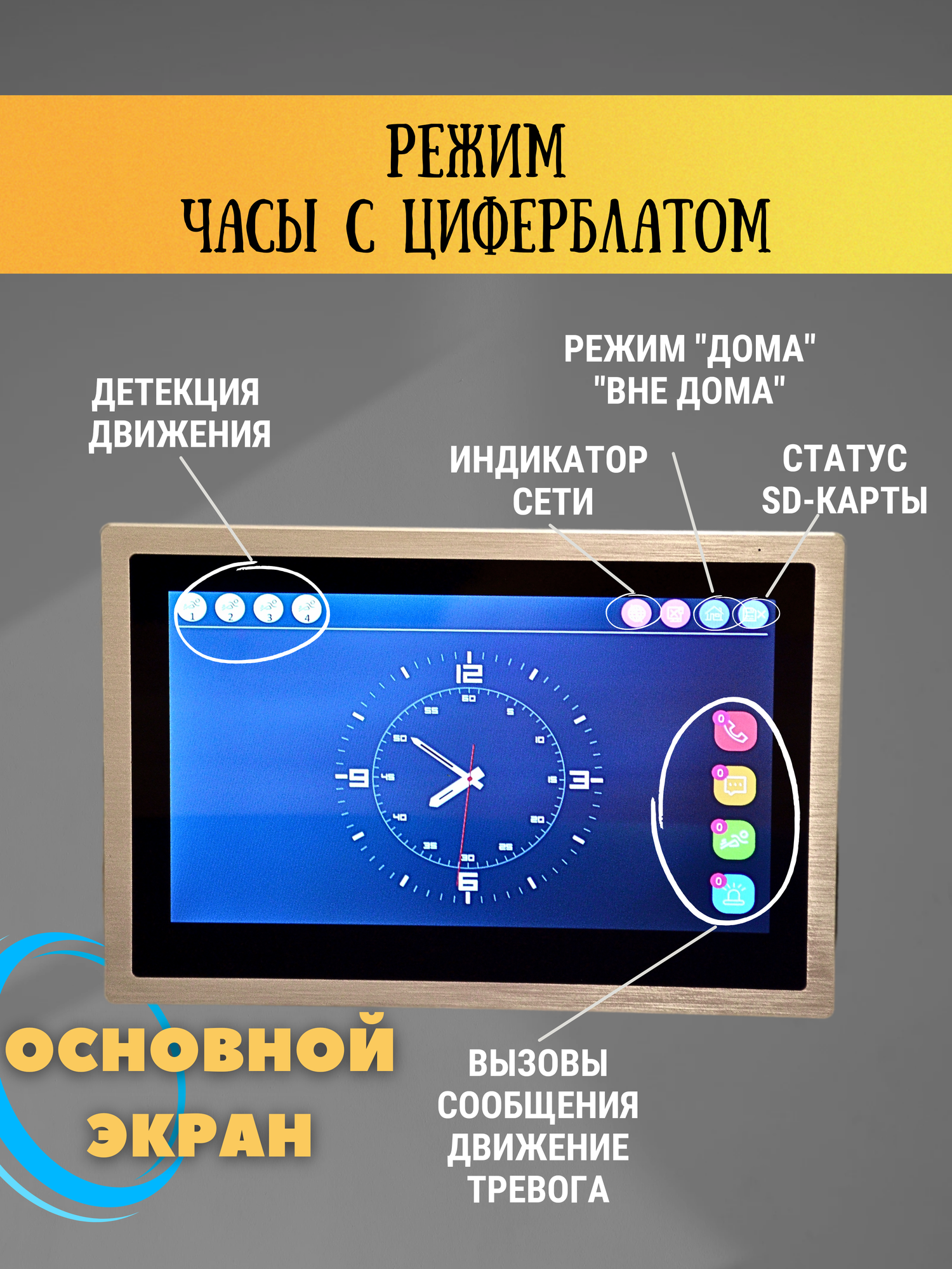| Дополнительная информация | Функции: фоторамка, часы, снимок, запись, разговор, регулировка громкости звонка, интерком, изменение масштаба |