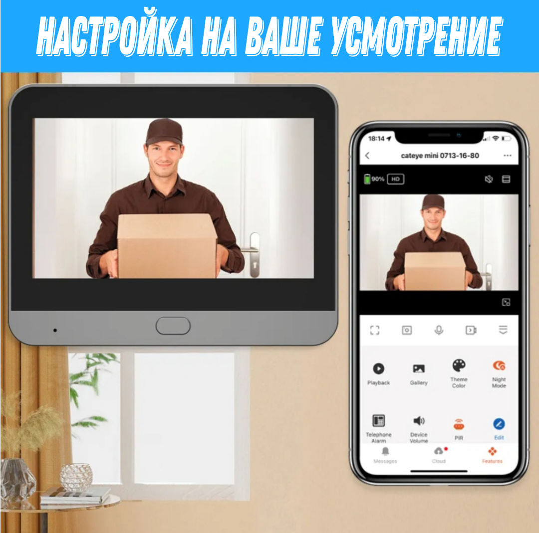 Видеоглазок WiFi с экраном и датчиком движения интересное: