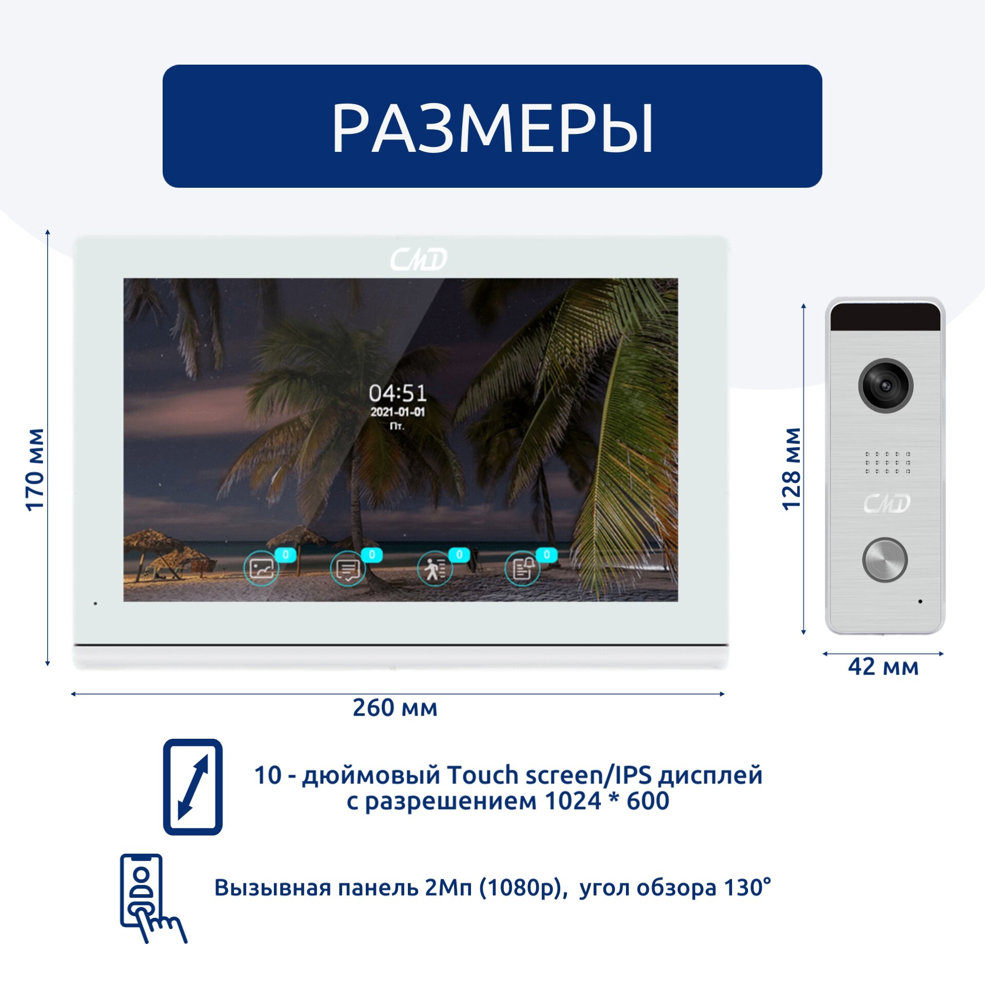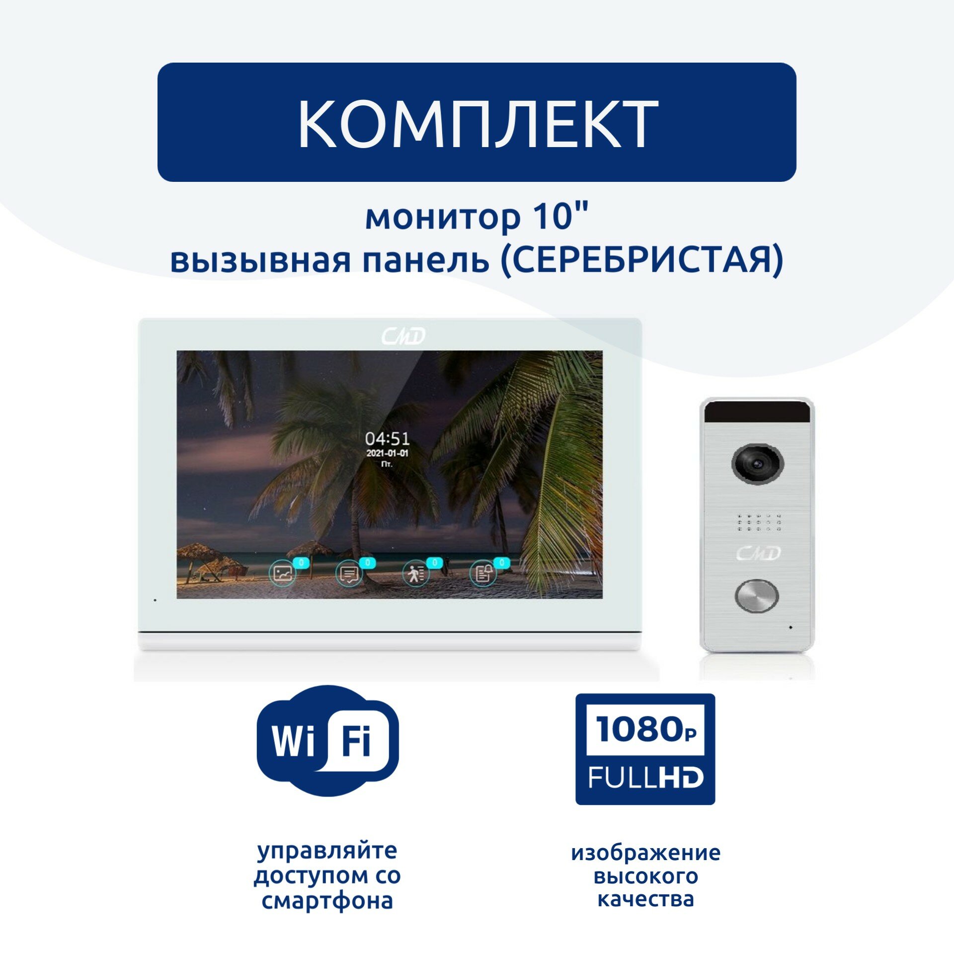 Комплект видеодомофона 10"и вызывной панели(серебро) CMD-VD109MK-Slim PRO FullHD Wi-Fi. Встроенный координатный модуль. интересное: