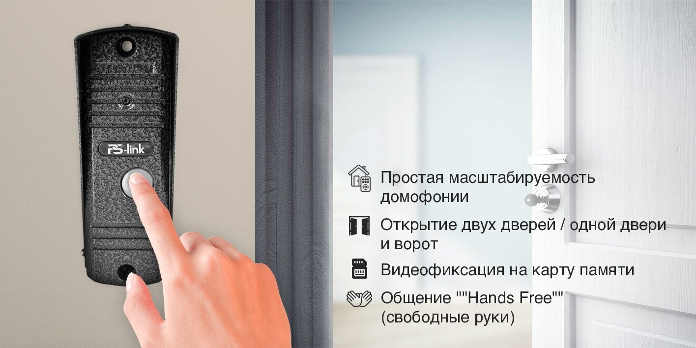 Комплект видеодомофона с вызывной панелью PS-link KIT-715DP-201CR-S интересное: