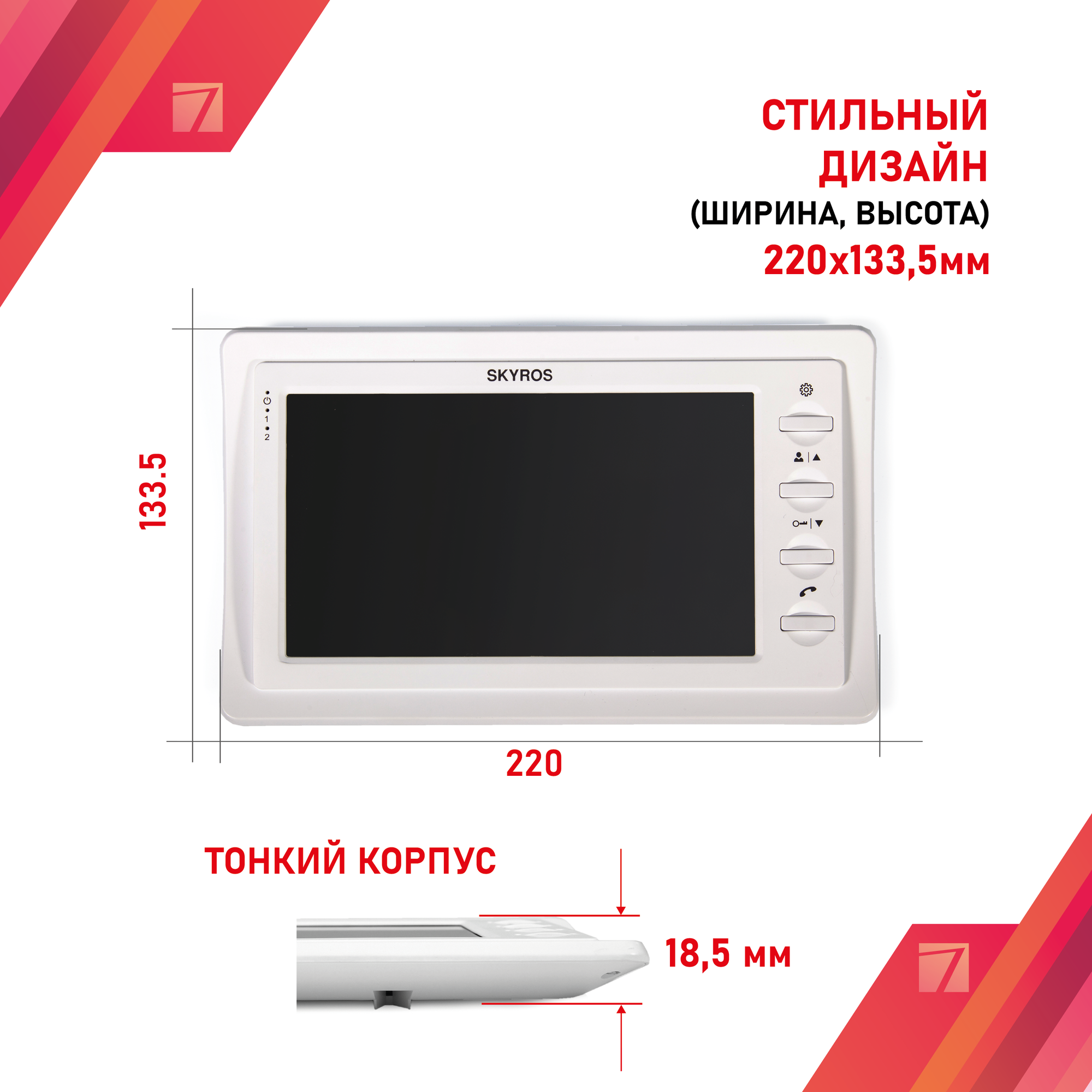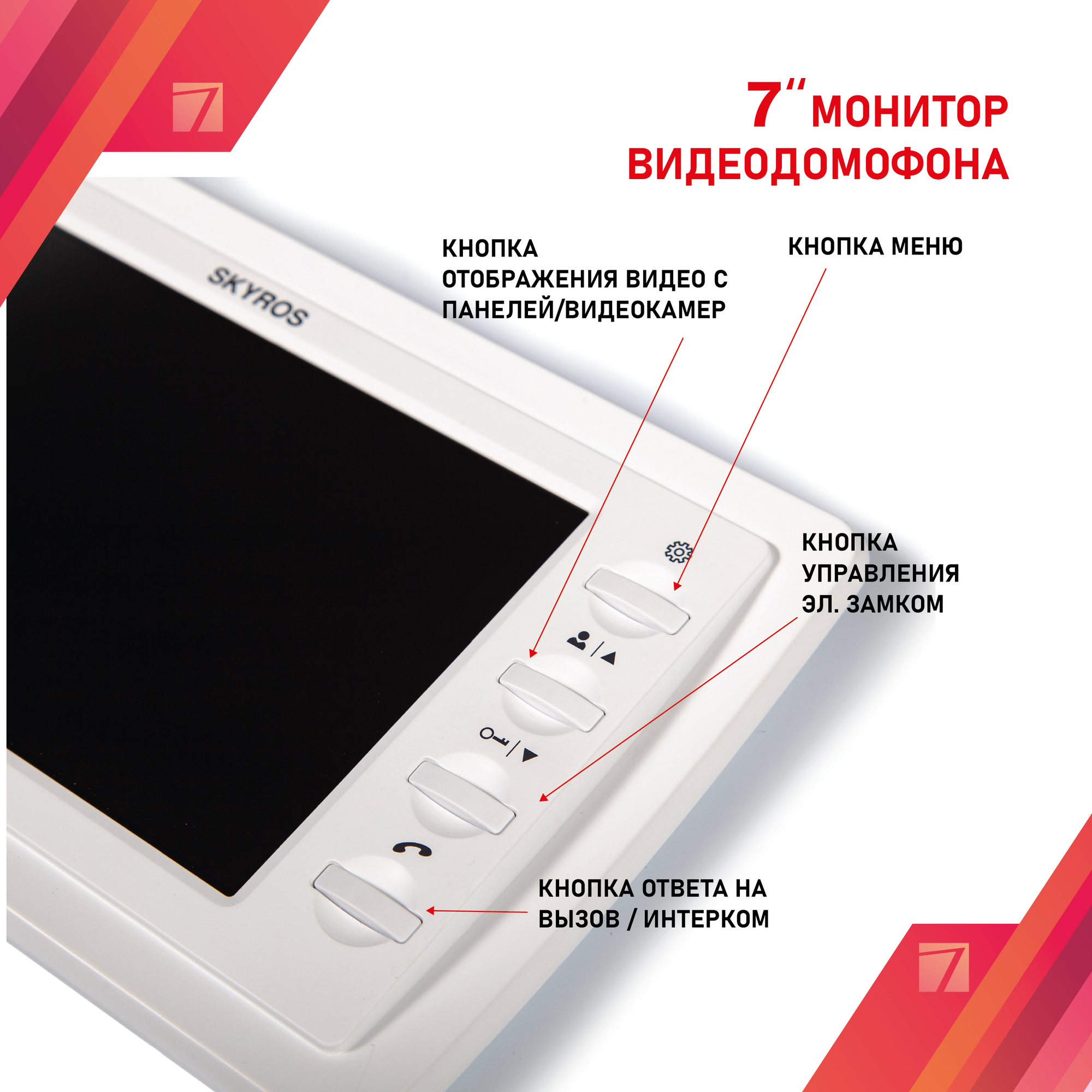 Монитор видеодомофона цветной 7 дюймов SKYROS интересное: