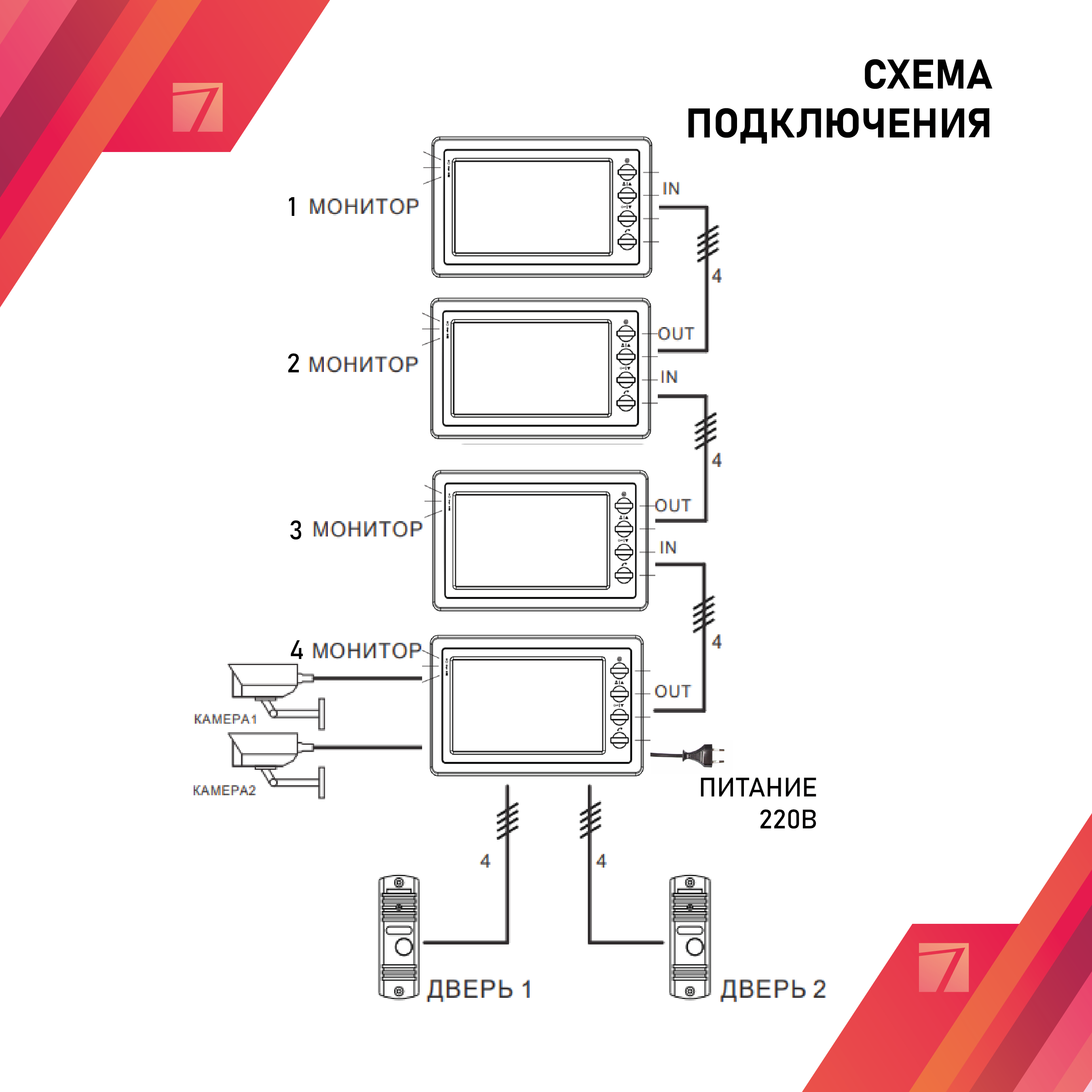 | Количество внутренних домофонов | 4 |