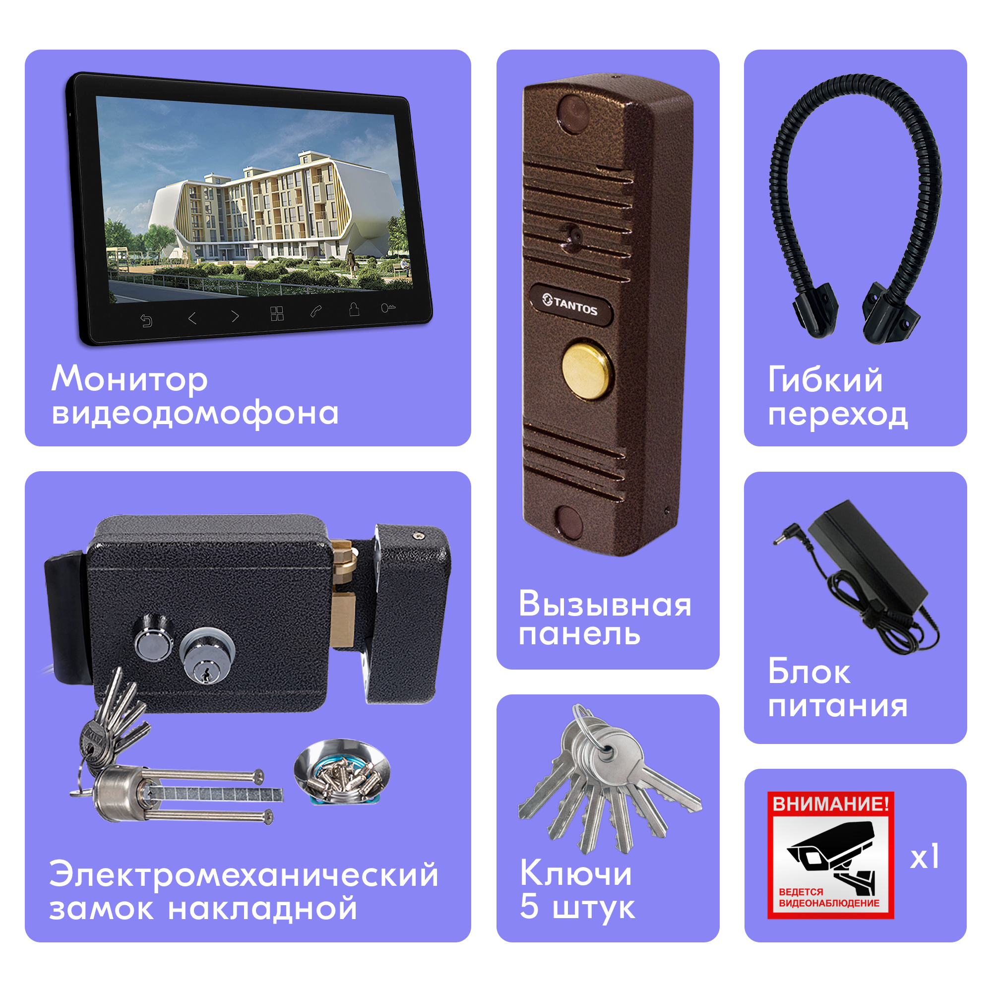 Купить Комплект видеодомофона с электромеханическим замком Tantos, 7 дюймов, цвет черный