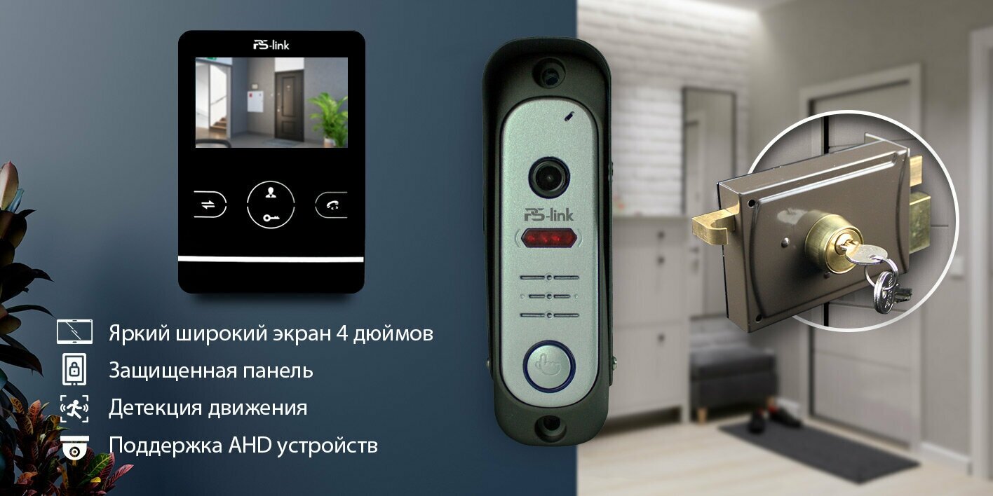 Комплект видеодомофона с вызывной панелью PS-link KIT-402DPB-206CR-S интересное: