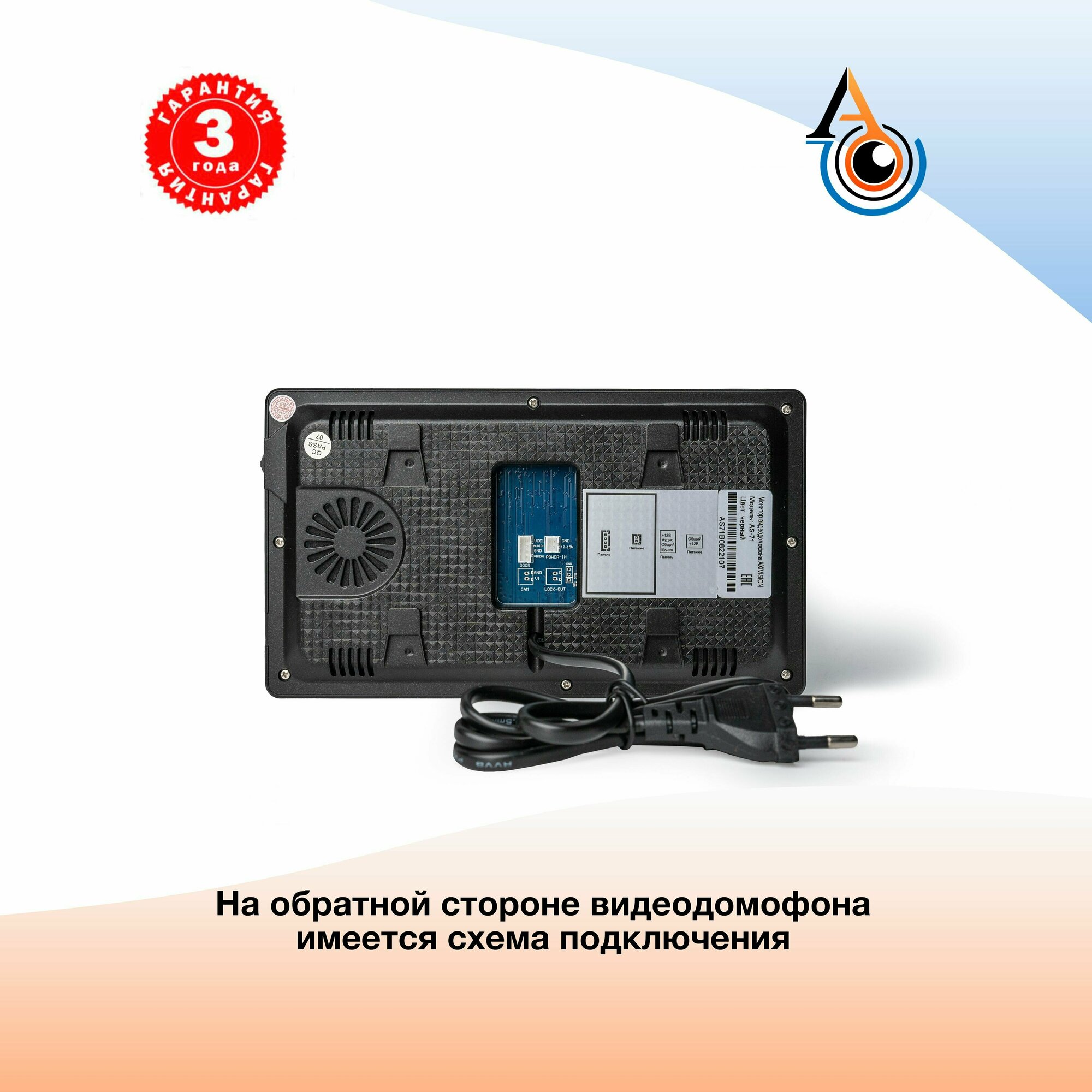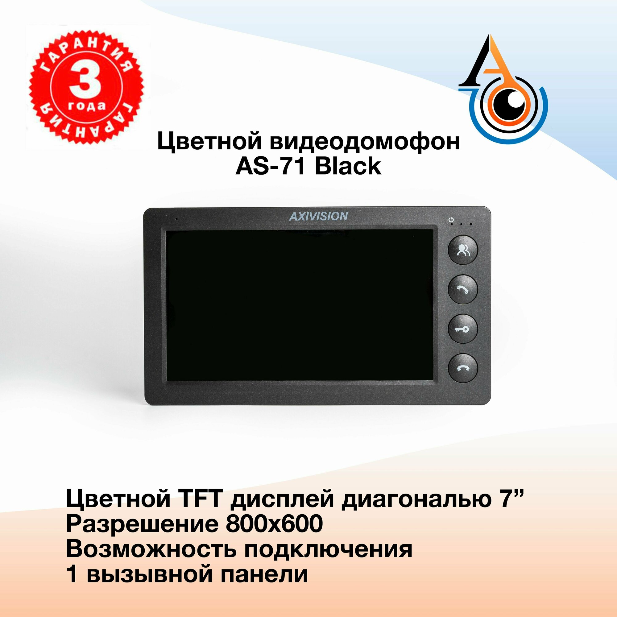 Видеодомофон Axivision AS-71 (черный) Домофон для квартиры, дома и офиса / Совместим с подъездным домофоном через блок сопряжения интересное: