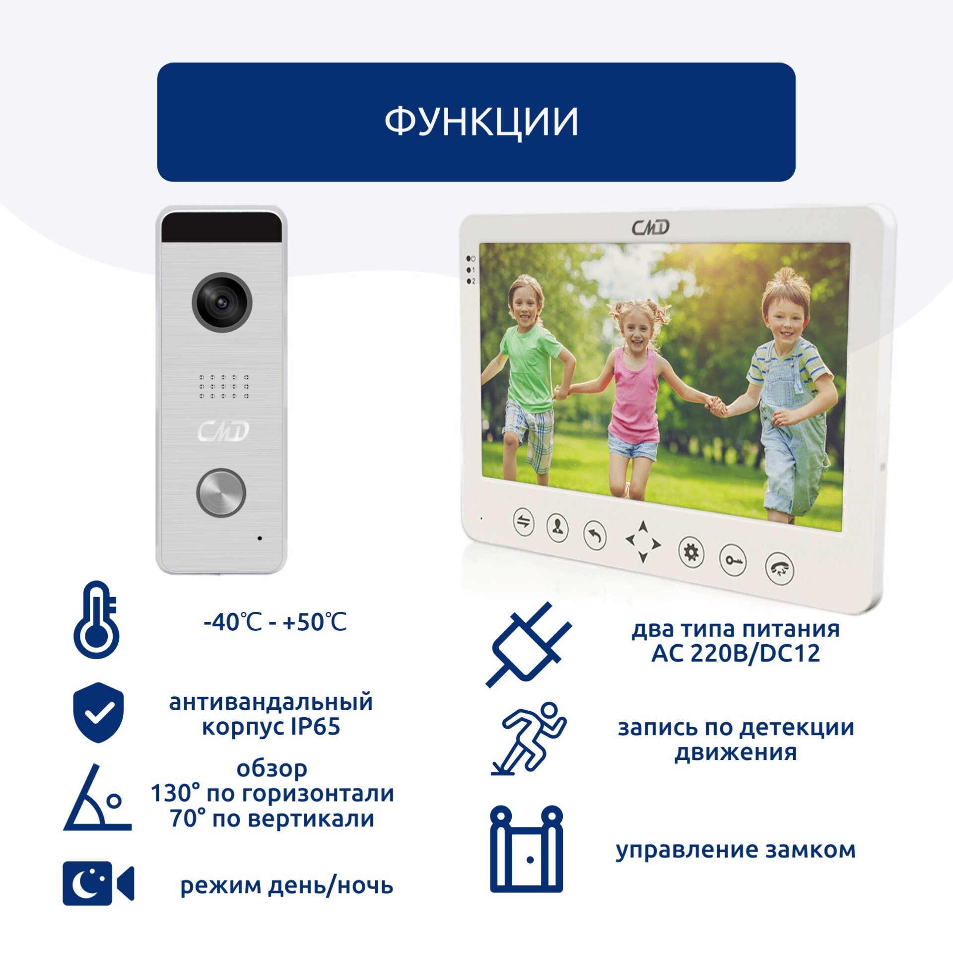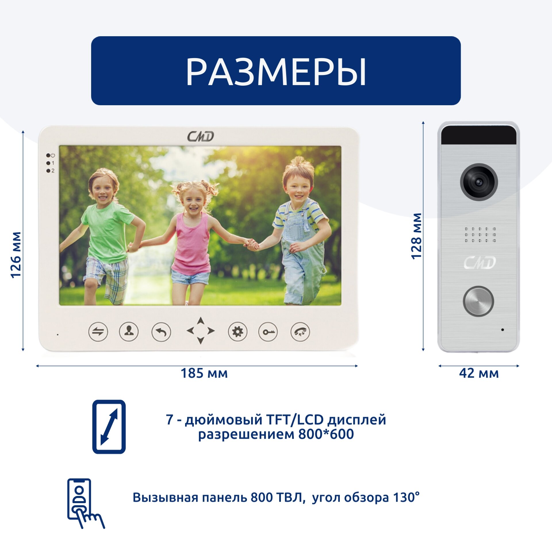 Комплект видеодомофона CMD-VD76M-KIT PRO 7", вызывная панель (серебро), для квартиры, дома и офиса. интересное: