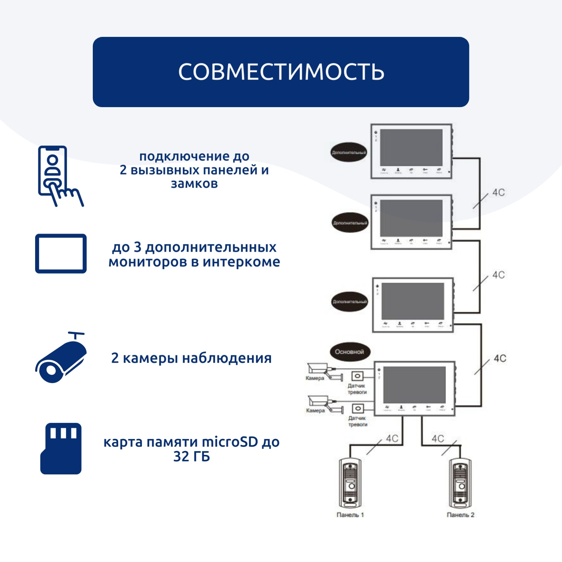 | Количество внутренних домофонов | 4 |