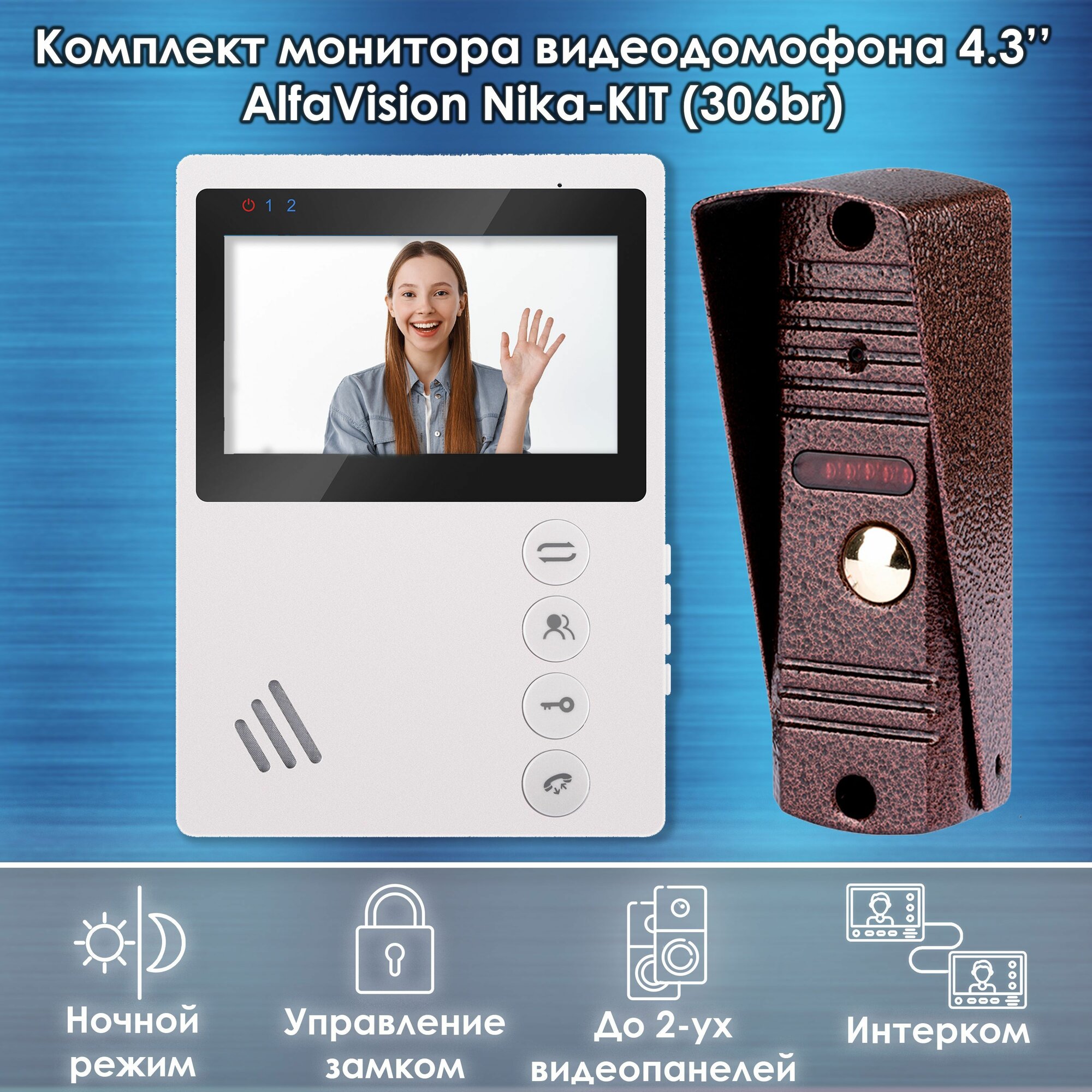 Комплект видеодомофона Nika-KIT 4.3 дюйма (306br), CVBS / в квартиру /в подъезд /для частного дома интересное: