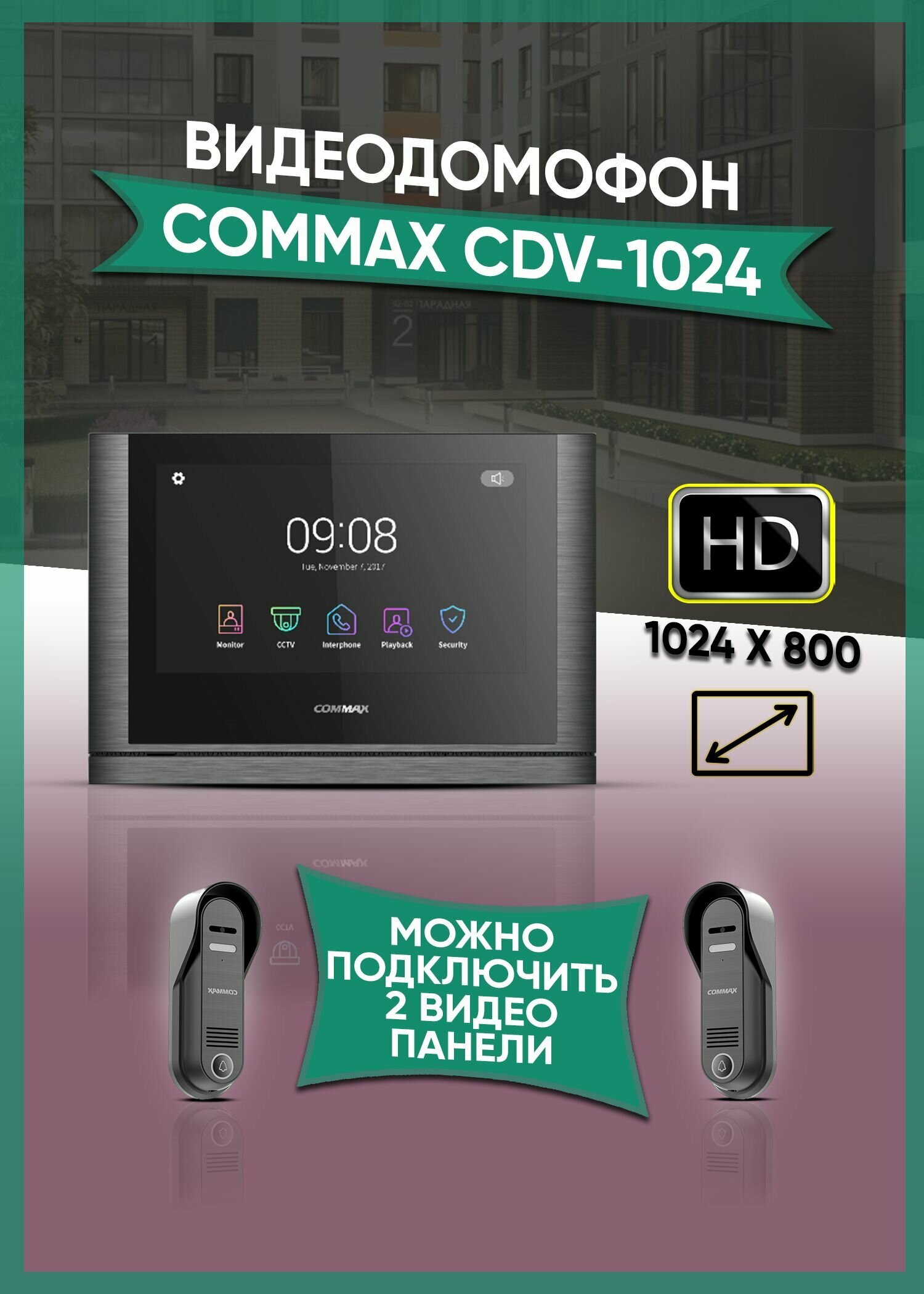 Комплект видеодомофона и вызывной панели COMMAX CDV-1024 (Metalo Grey Black Smog) / 4CPHD (AHD комплект) интересное: