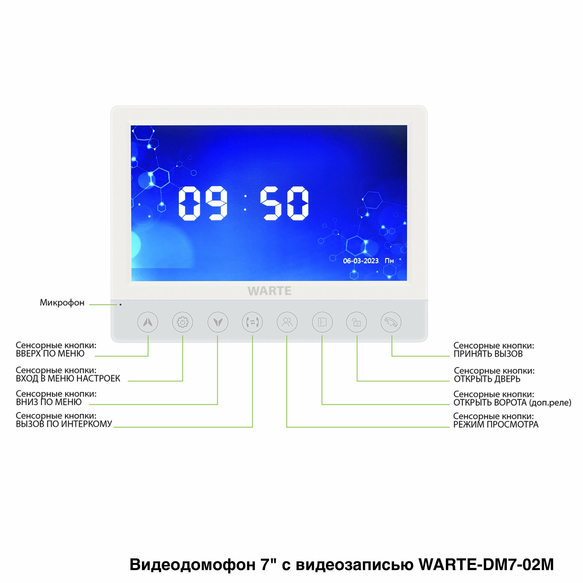 Комплект видеодомофона для квартиры или дома WARTE-07-03 белый/медь 7" с видеозаписью интересное: