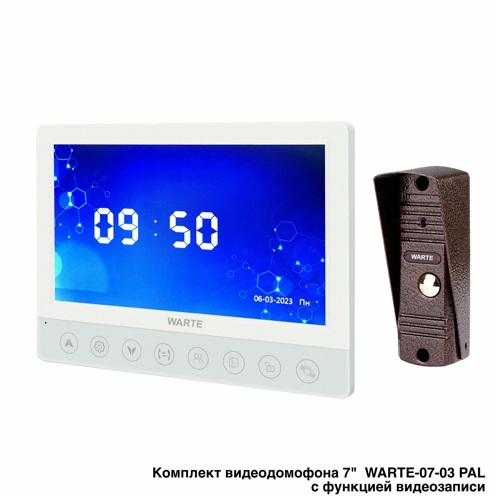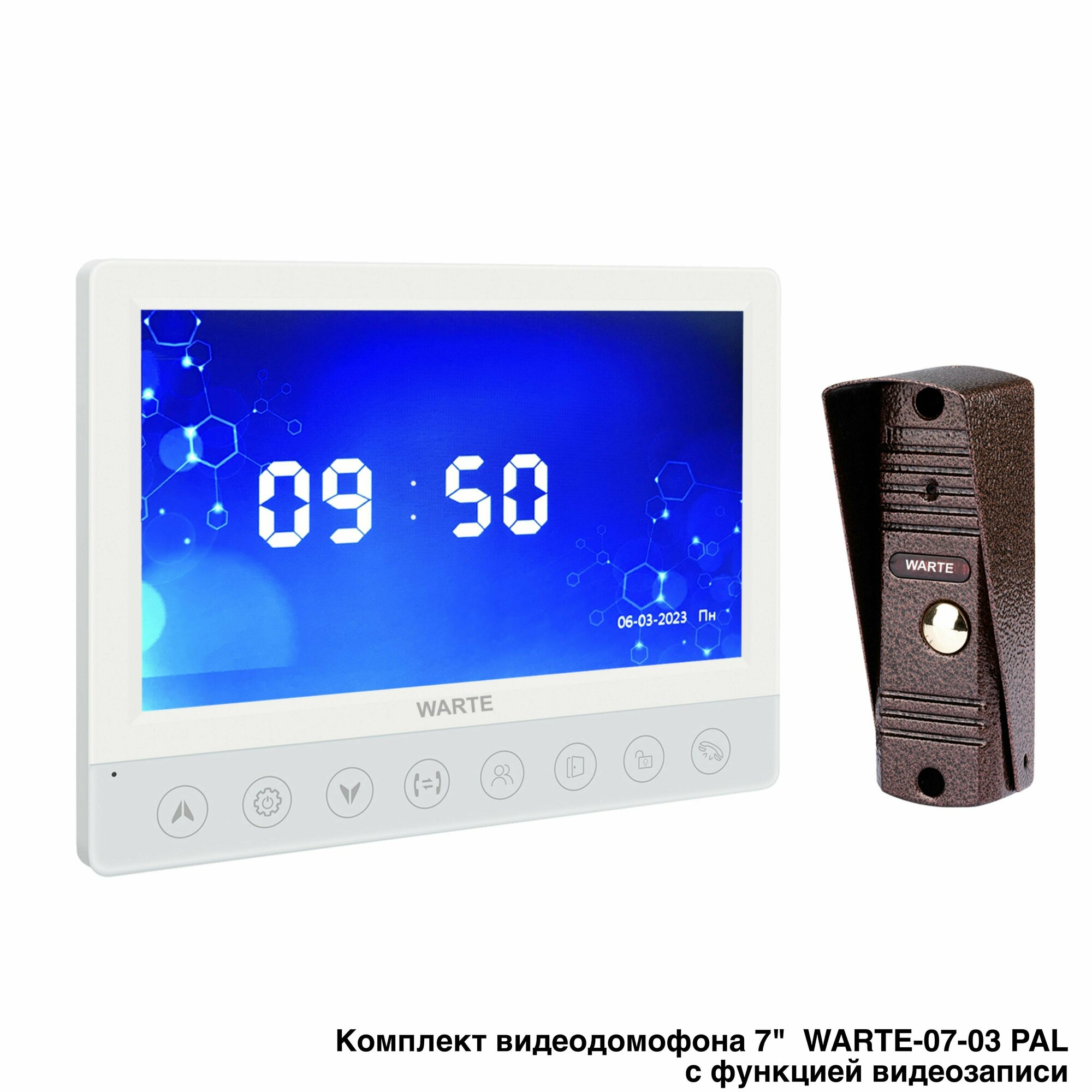 Купить Комплект видеодомофона для квартиры или дома WARTE-07-03 белый/медь 7" с видеозаписью