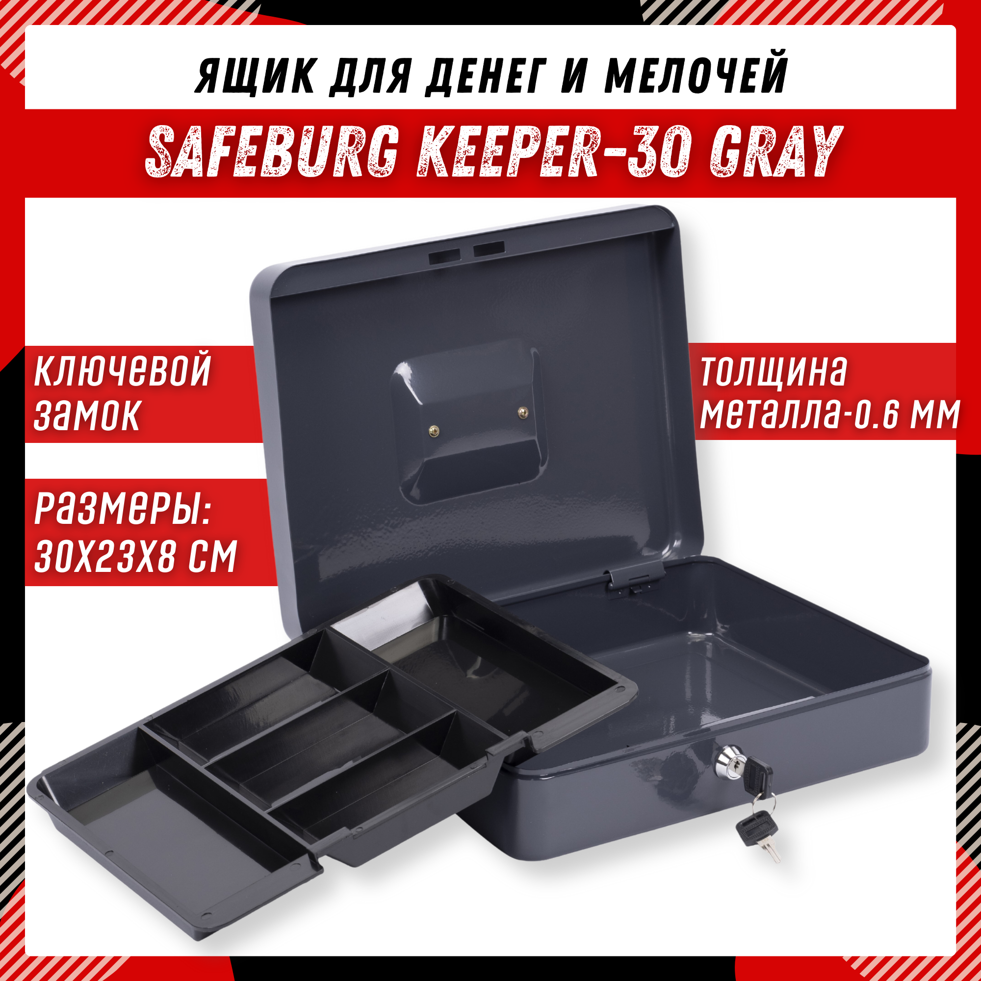 Ящик для денег SAFEBURG Keeper-30 Gray, переносной сейф/кэшбокс интересное: