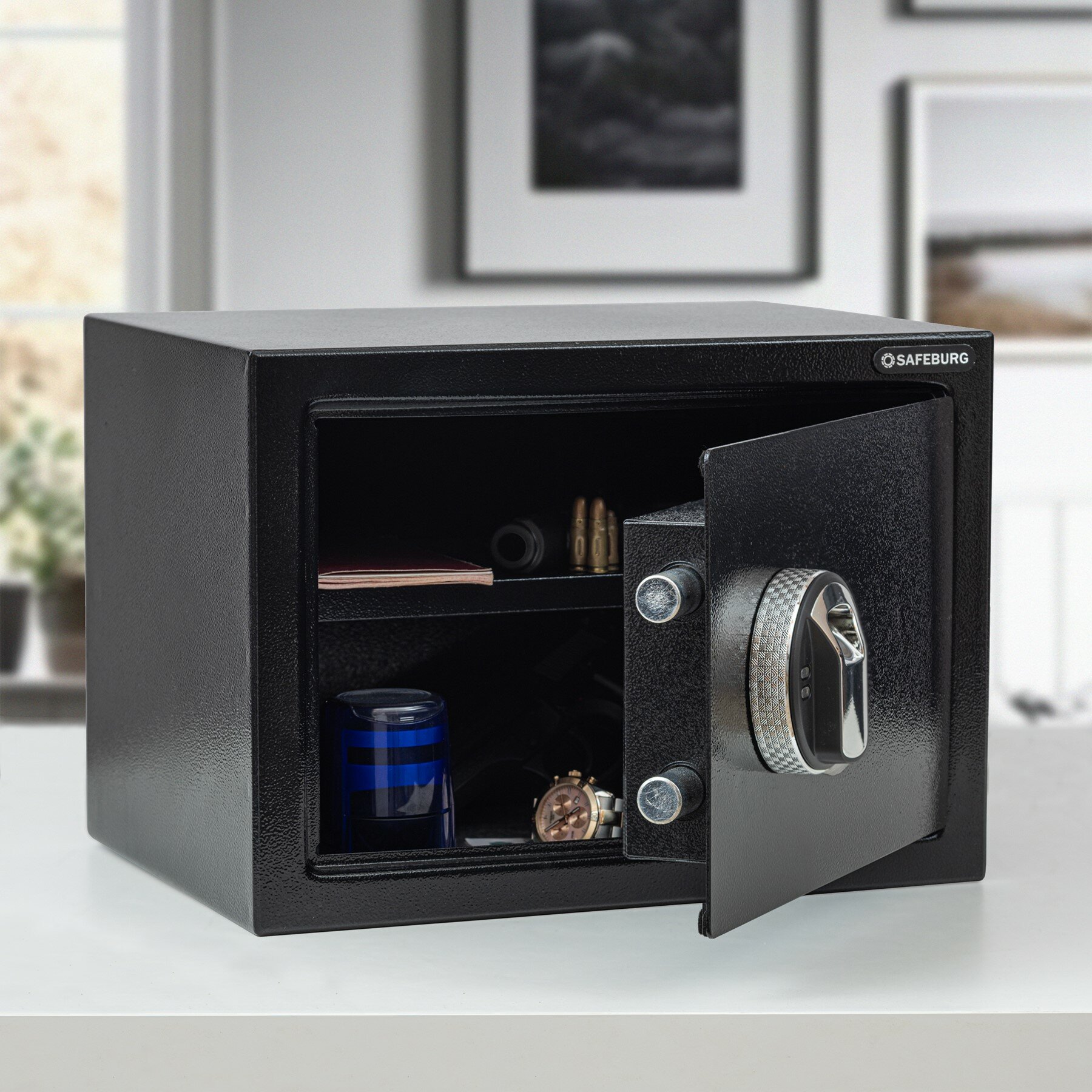 Купить Сейф мебельный SAFEBURG SB-250F BLACK для денег и документов, для дома и офиса, биометрический замок (сканер отпечатка пальца)