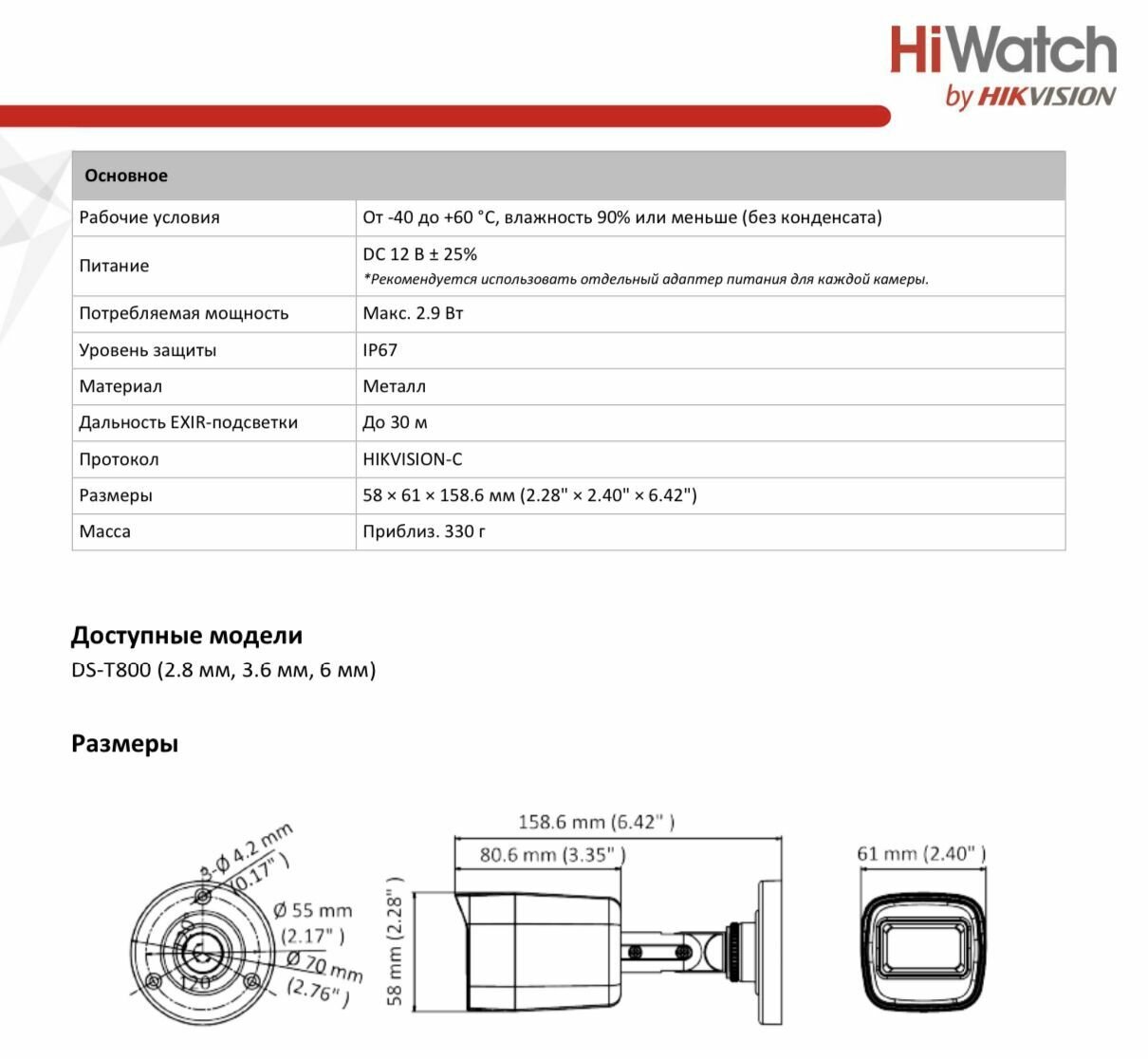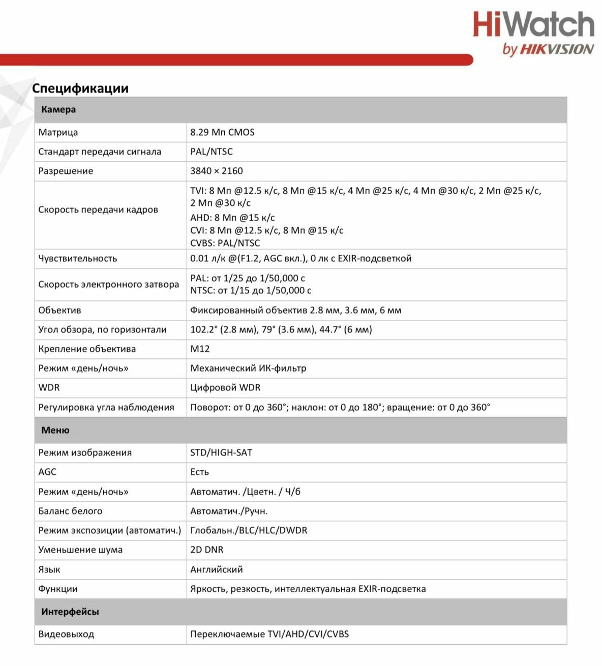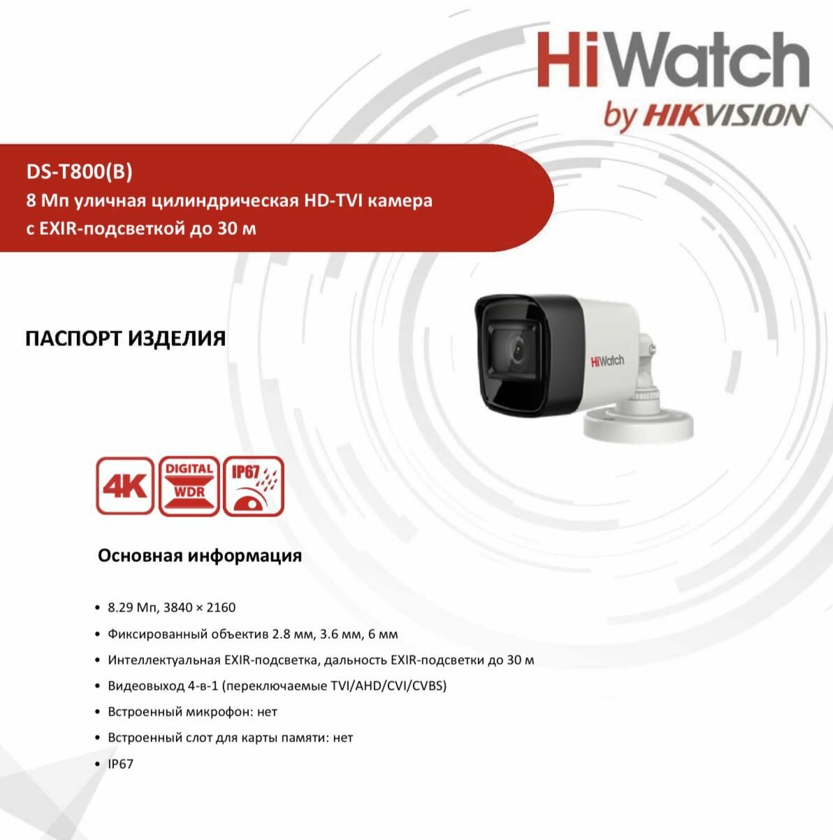 Видеокамера 8МП HiWatch DS-T800 2.8mm мультиформатная интересное: