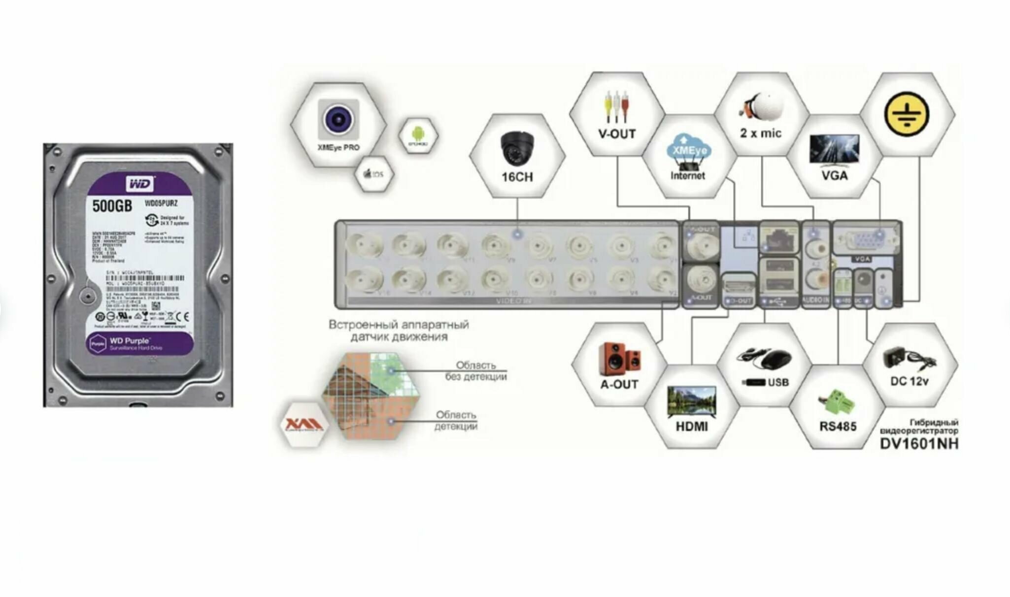 Видеорегистратор видеонаблюдения на 16 камер до 5мП (HDD2Tb) интересное: