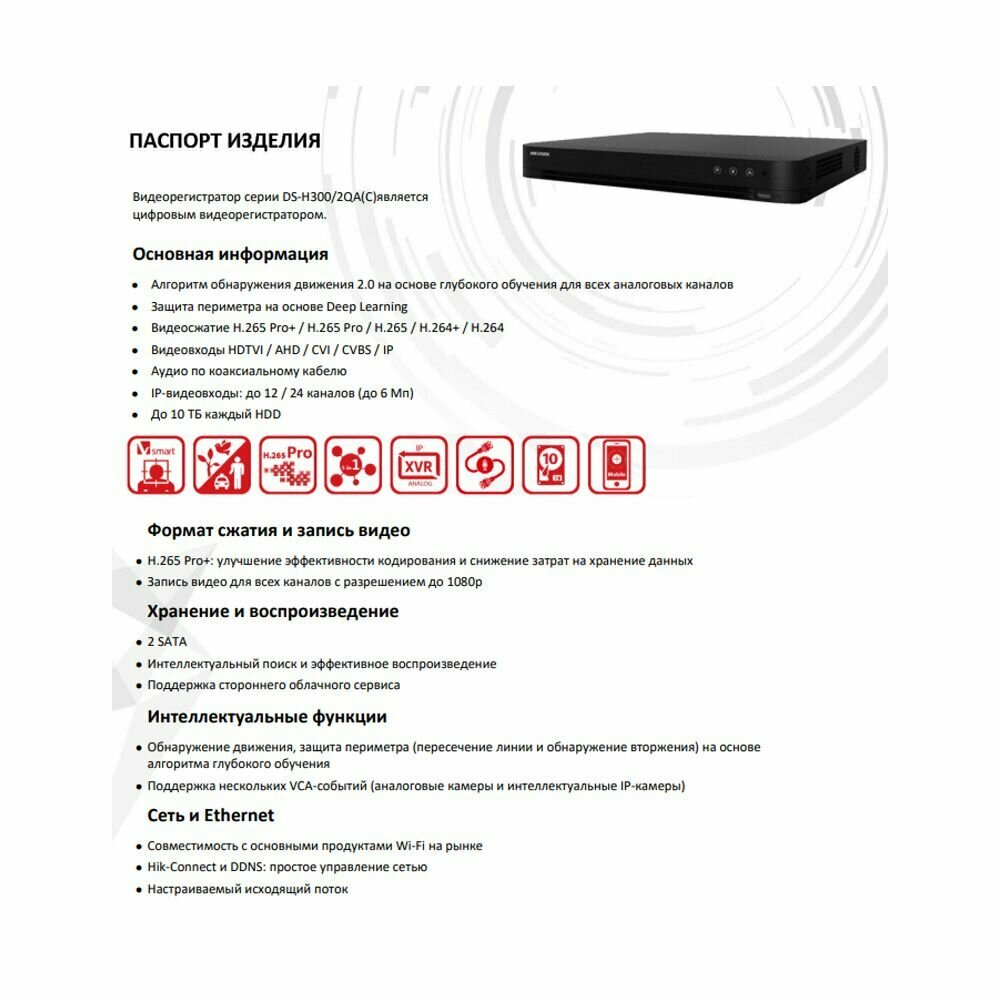 | Комплектация | Видеорегистратор DS-H316/2QA( C) 16-ти канальный гибридный HD-TVI регистратор |