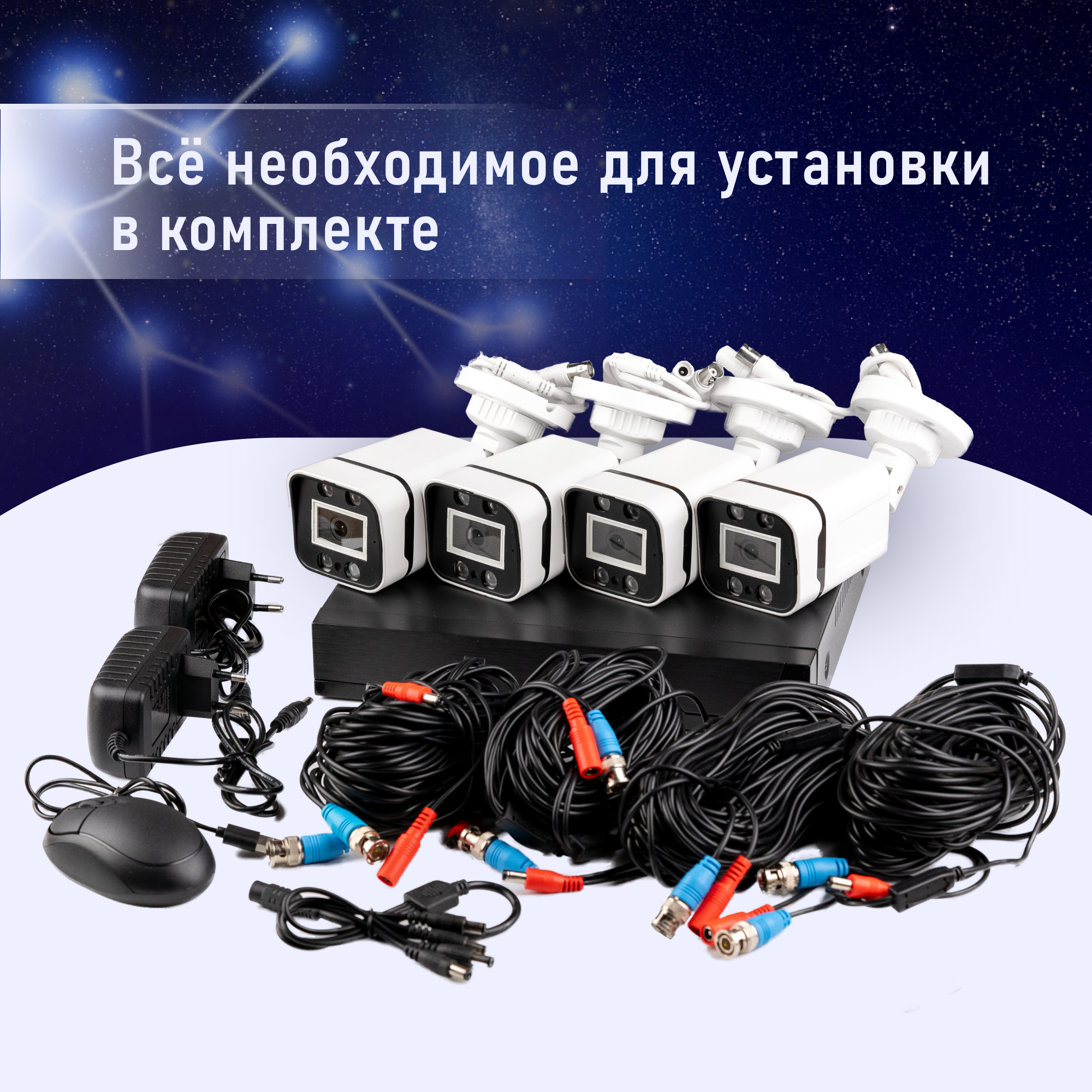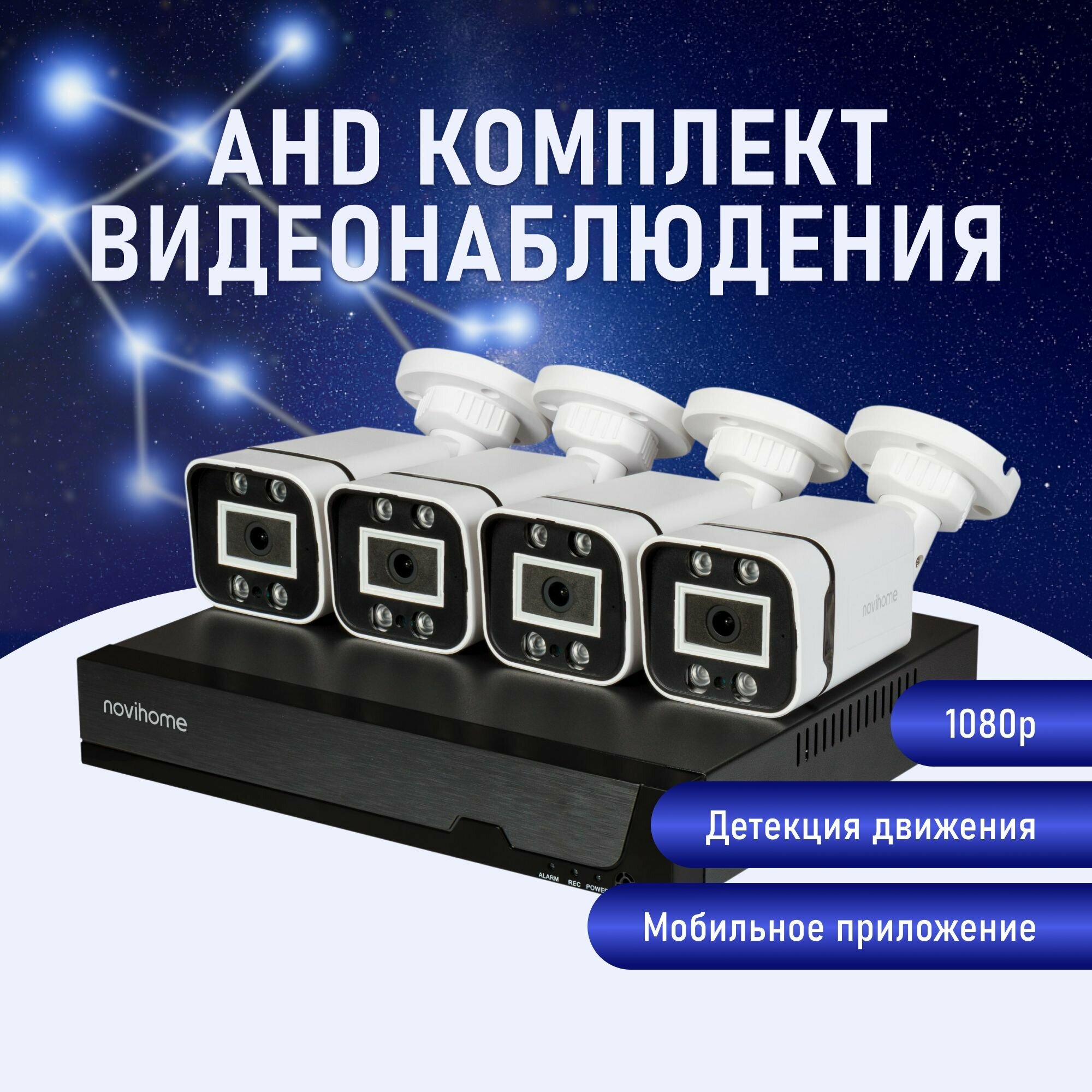 Купить Комплект видеонаблюдения AHD 4 уличные камеры и регистратор Novihome Pollux. Для дома, дачи, офиса