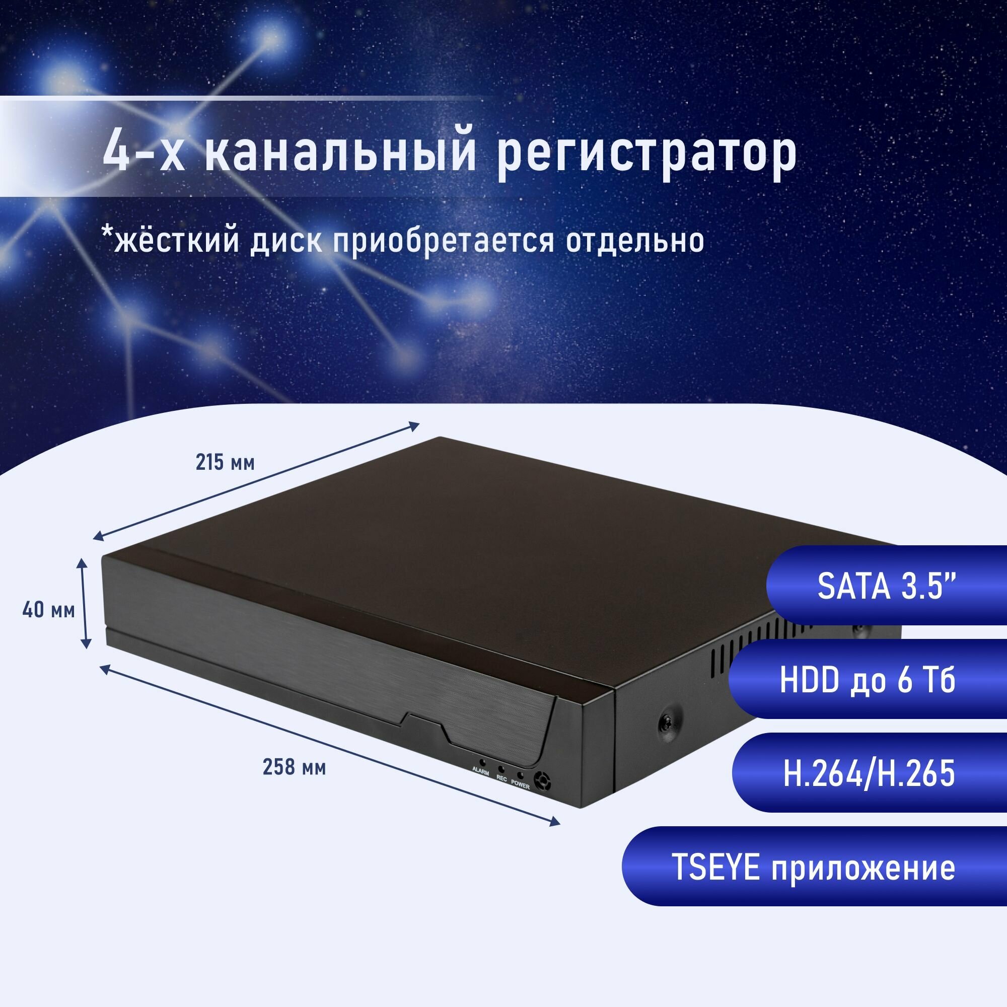 | Подробная комплектация | 1) Видеорегистратор (без HDD) x 1 шт. 2) AHD видеокамеры x 4 шт. 3) Адаптер питания DC 12V 2A x 2шт. 4) USB мышь x 1шт. 5) Руководство пользователя /технический паспорт х 1шт. 6) Кабели BNC/ питания для подключения камер x 4 шт. 7) Кабель питания 1-4 x 1 шт. 8) Крепежный набор x 1 шт |