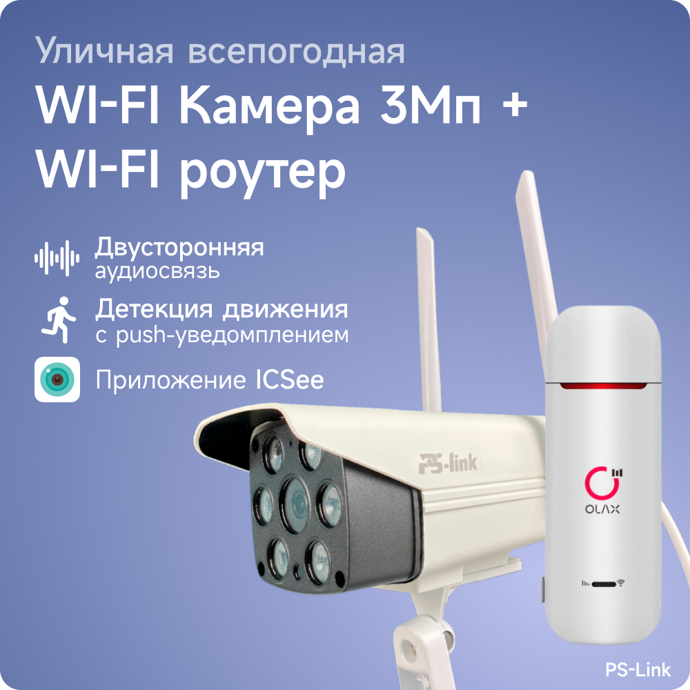 Комплект видеонаблюдения 4G PS-link XMS302-4G с записью на SD карту, 2 камеры, 3Мп