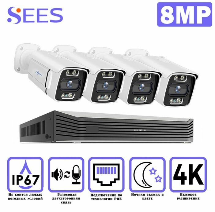 Ip-Poe Комплект камер видеонаблюдения 8МП 4 Камер MO-5804P интересное: