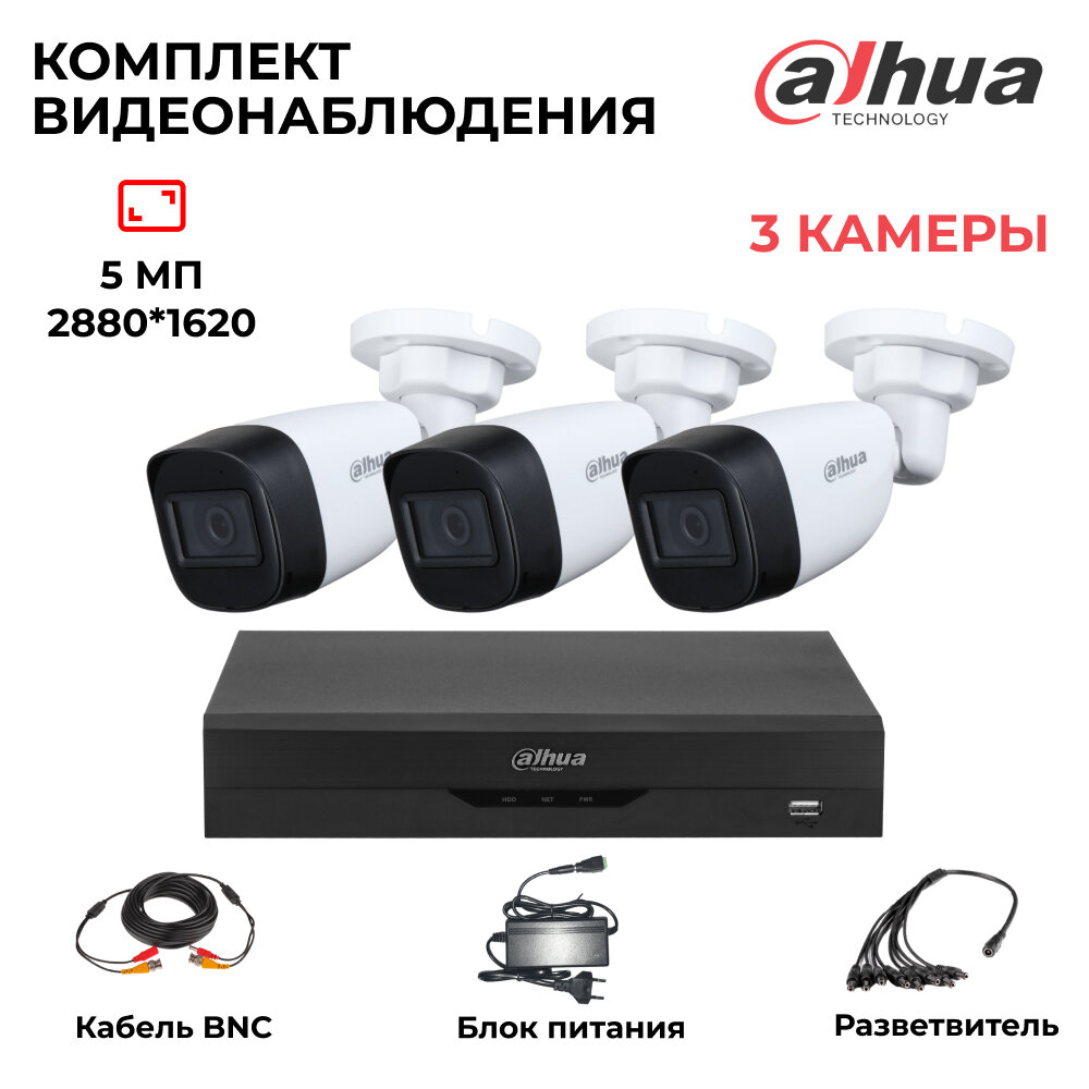 Купить Комплект видеонаблюдения уличный 5Мп Dahua 3 камеры