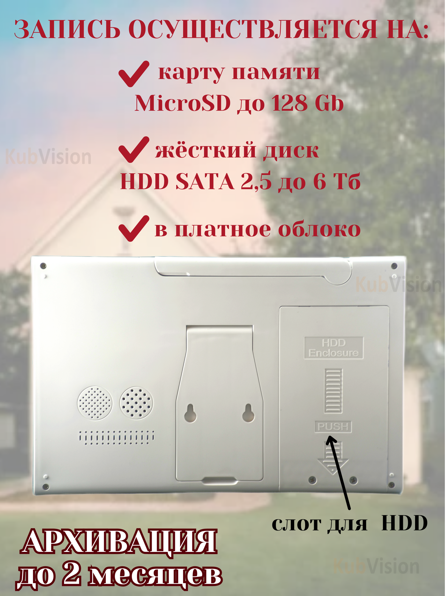 | Экран наблюдения (монитор) | двойная/четверная картинка |