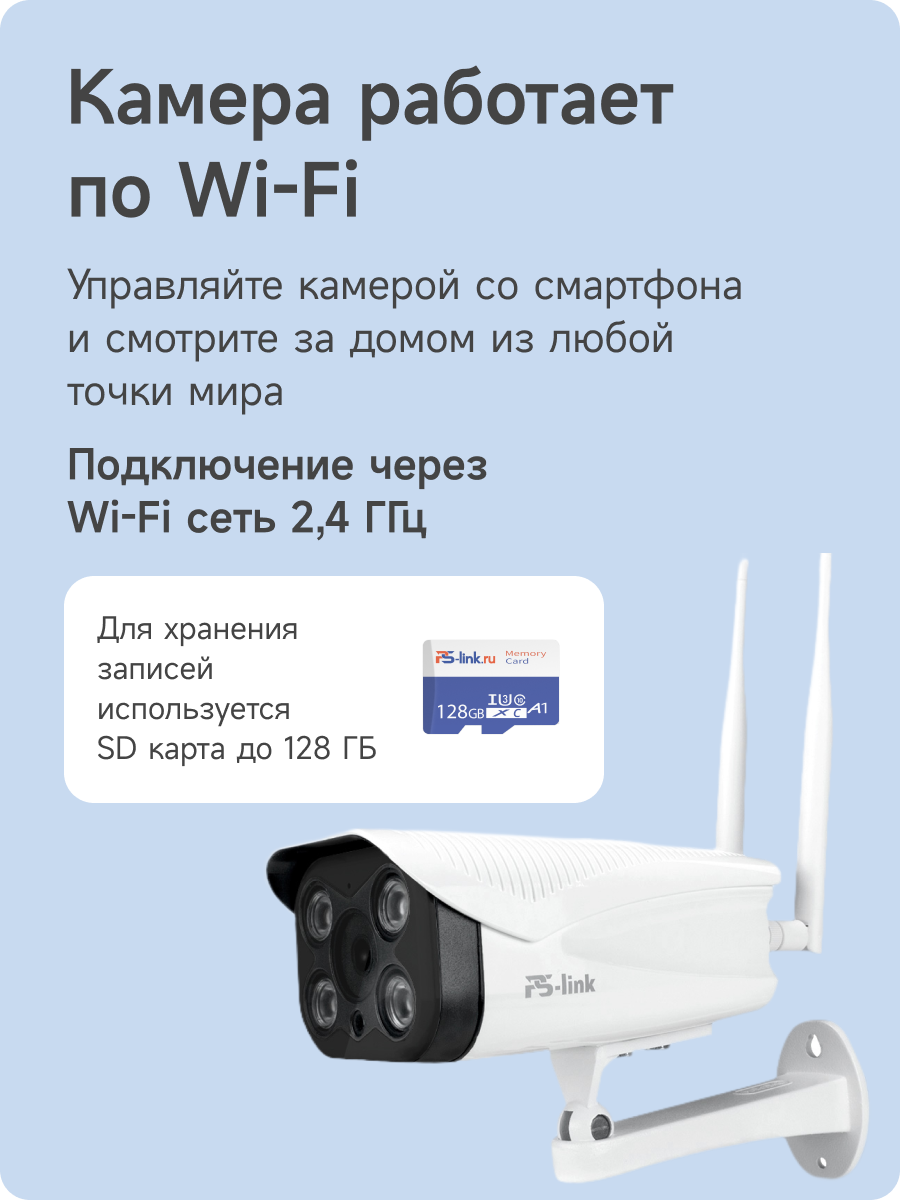 | Подробная комплектация | Камера; Кронштейн крепления; Блок питания камеры; Монтажный комплект; USB-WIFI роутер; Адаптер питания роутера |
