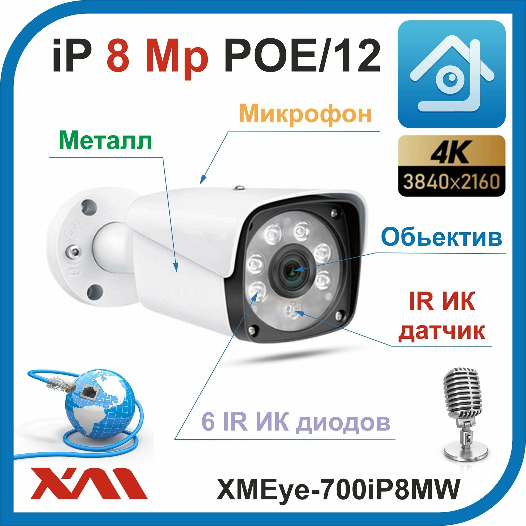 Купить Комплект видеонаблюдения IP POE на 6 камер с микрофоном, 8 Мегапикселей. Xmeye-818P700iP8MW-6-POE.