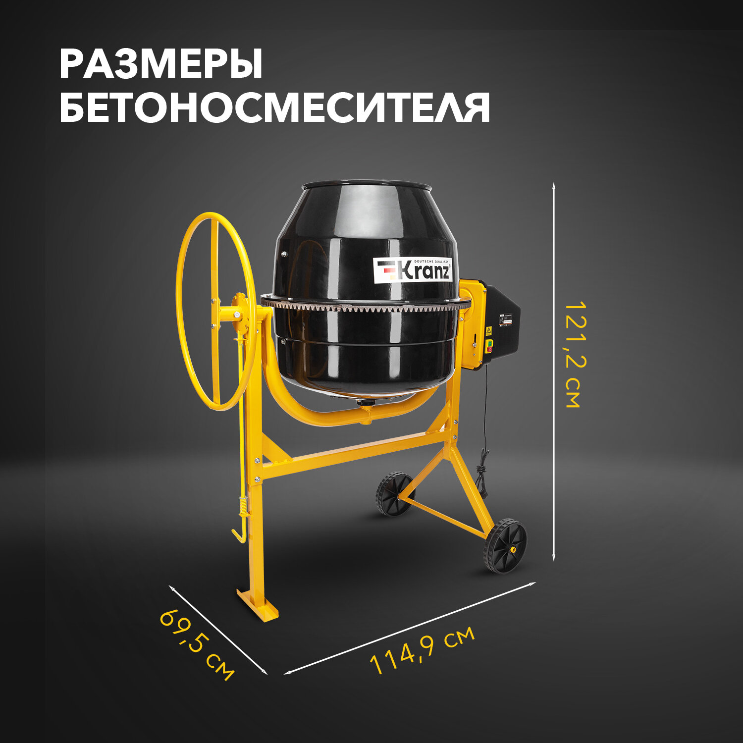 Бетоносмеситель KR-160, 700Вт, 160л, чугунный венец KRANZ интересное: