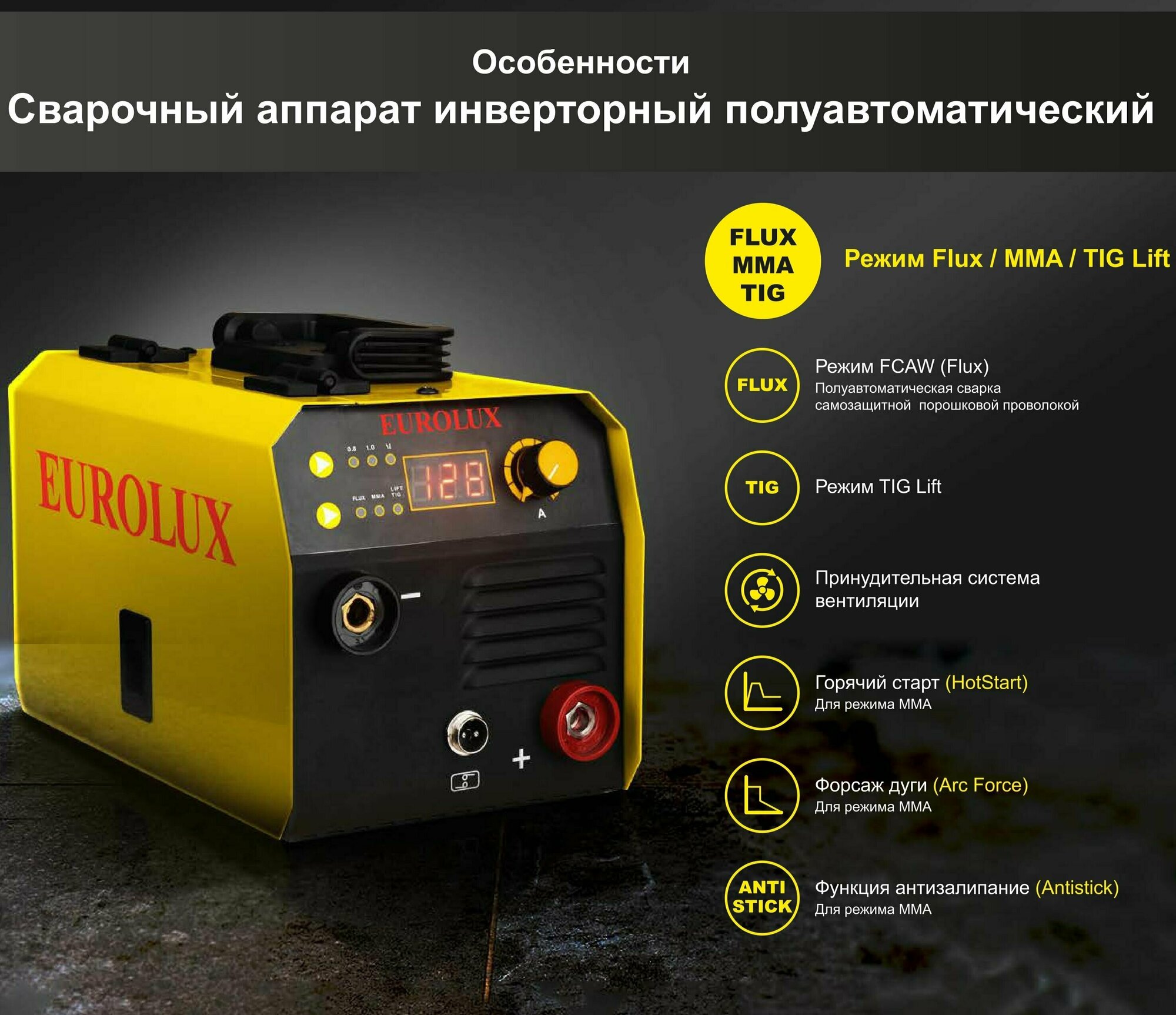 Сварочный полуавтомат Eurolux САИПА-200 MPEX 3 в 1 (инвертор, полуавтомат, MMA, TIG, FC, 140-270 В, 20 200 А, ПВ - 70%) интересное: