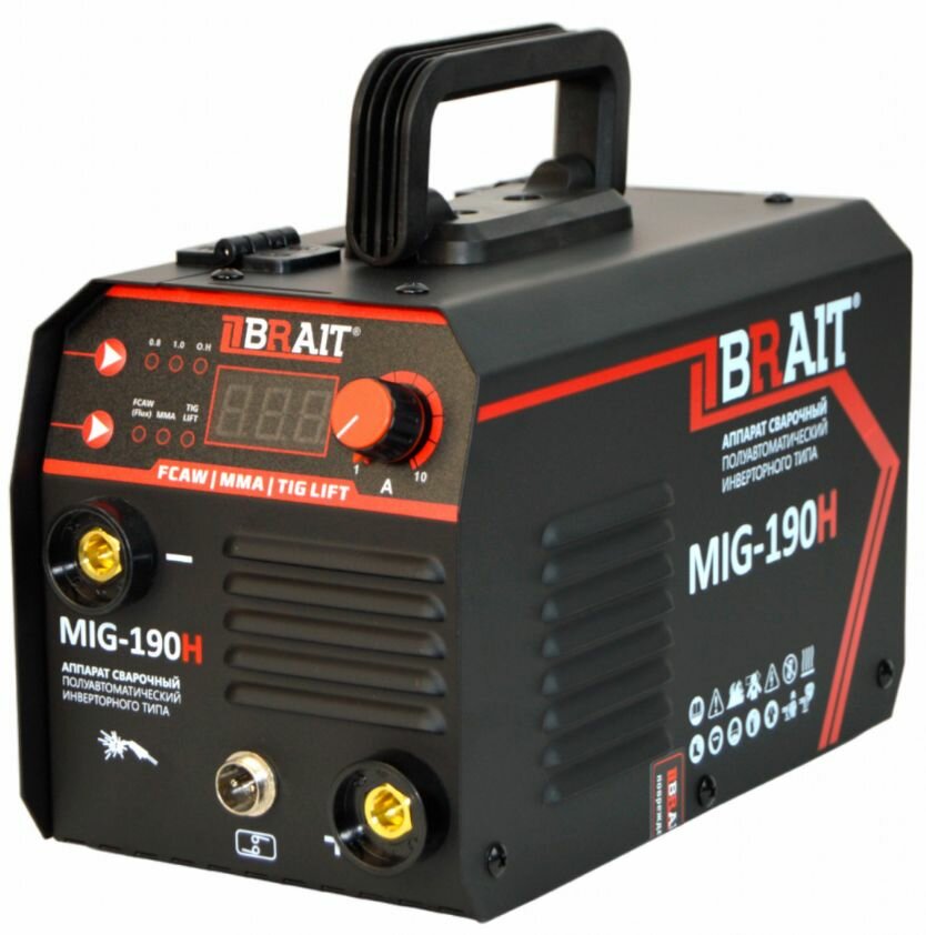 Инвертор сварочный полуавтомат Brait MIG-190H, 3 режима сварки MIG/FCAW+ TIG + MMA, 5.44 кг, 165А