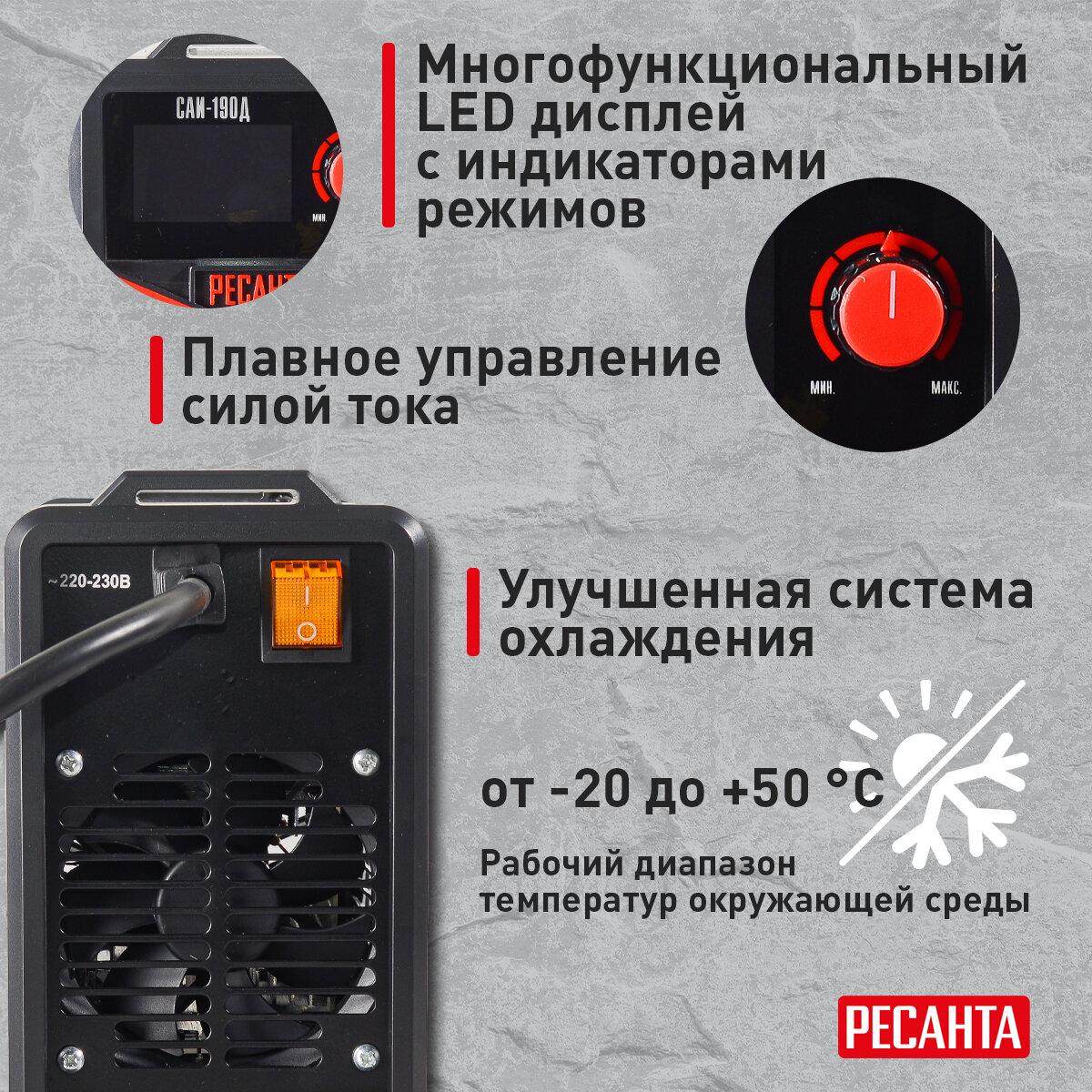 Сварочный аппарат инверторный САИ-190Д Ресанта, ММА, 20-190А, Дисплей
