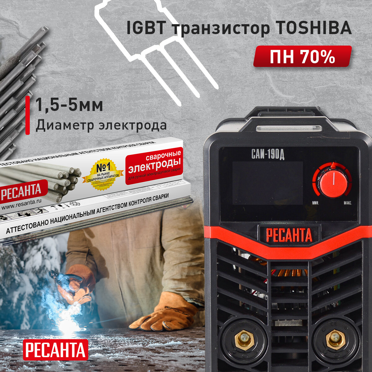 Ниже Вы можете прочитать отзывы на Сварочный аппарат инверторный Ресанта САИ-190Д (MMA, 190А, ПВ - 70%, с дисплеем ), ознакомится с подробными характеристиками, посмотреть интересные обзоры и фотографии на Сварочный аппарат инверторный Ресанта САИ-190Д (MMA, 190А, ПВ - 70%, с дисплеем ).