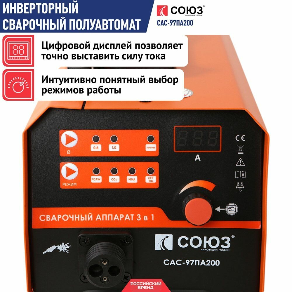 Инверторный полуавтомат СОЮЗ САС-97ПА200 интересное: