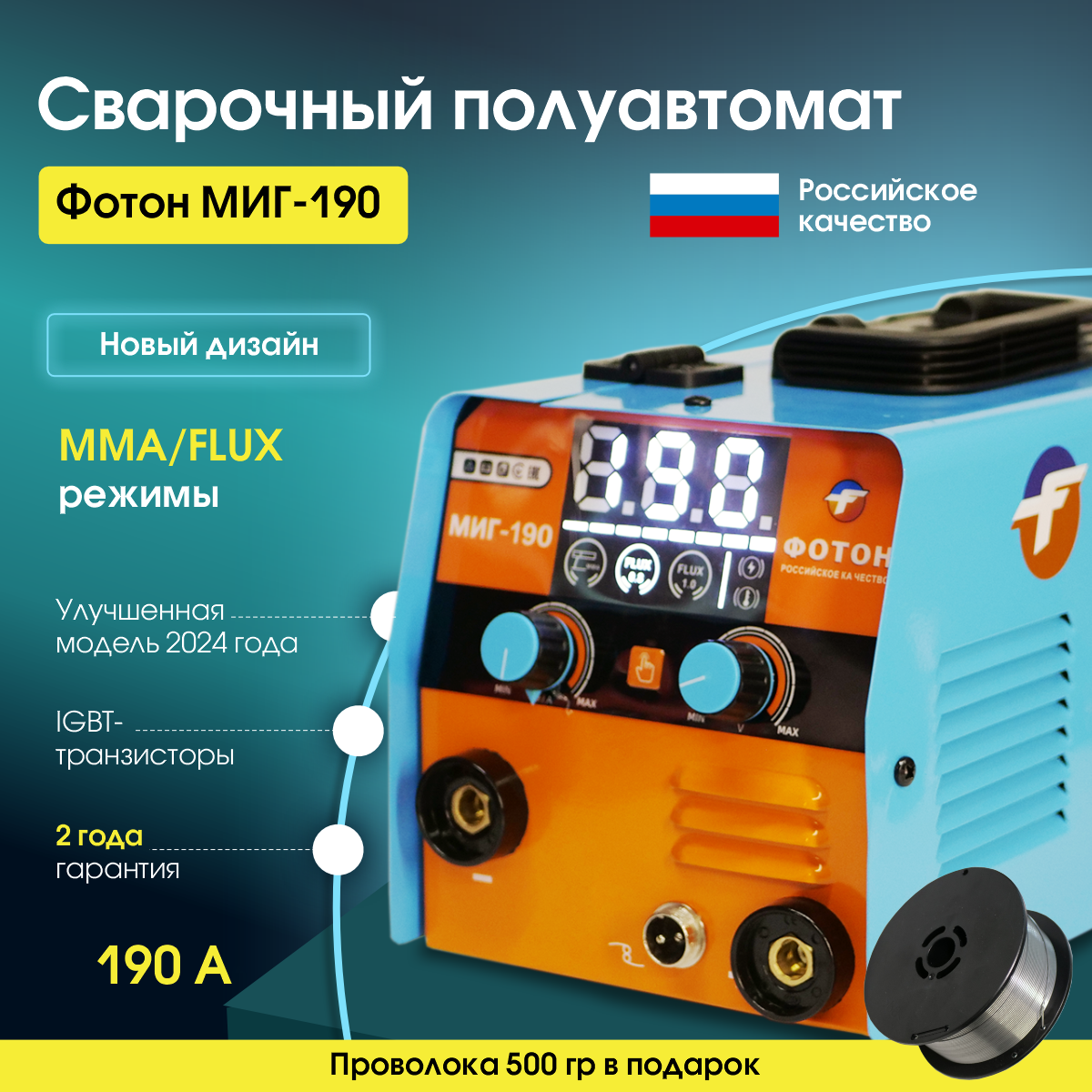 Сварочный полуавтомат "фотон МИГ-190"/ Инверторный аппарат/ Работает в режимах MMA и MIG без газа/ Подарок отцу/ другу/ мужу интересное: