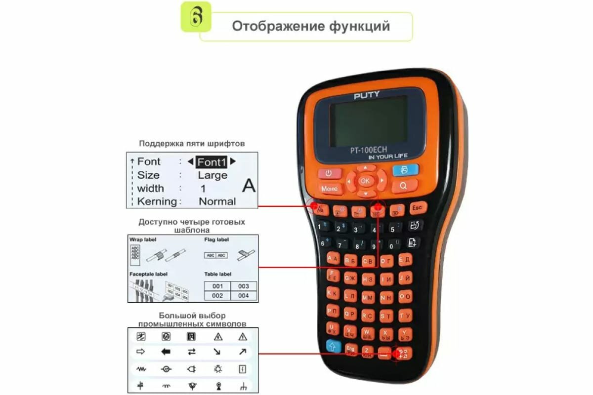 Принтер для печати наклеек Puty PT-100ECH ручной рус/англ (аналог Brother PT E110, PT H110, Dymo D210) печатает только на лентах Vell CH интересное: