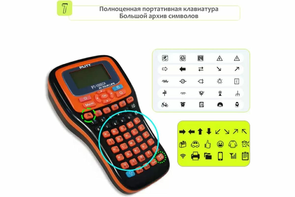 Купить Принтер для печати наклеек Puty PT-100ECH ручной рус/англ (аналог Brother PT E110, PT H110, Dymo D210) печатает только на лентах Vell CH