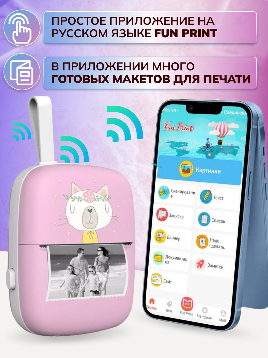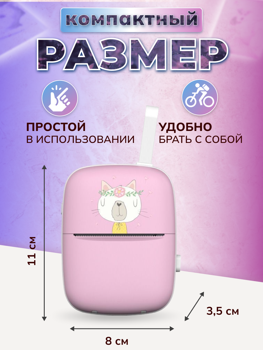 Портативный принтер для детей сиреневый интересное:
